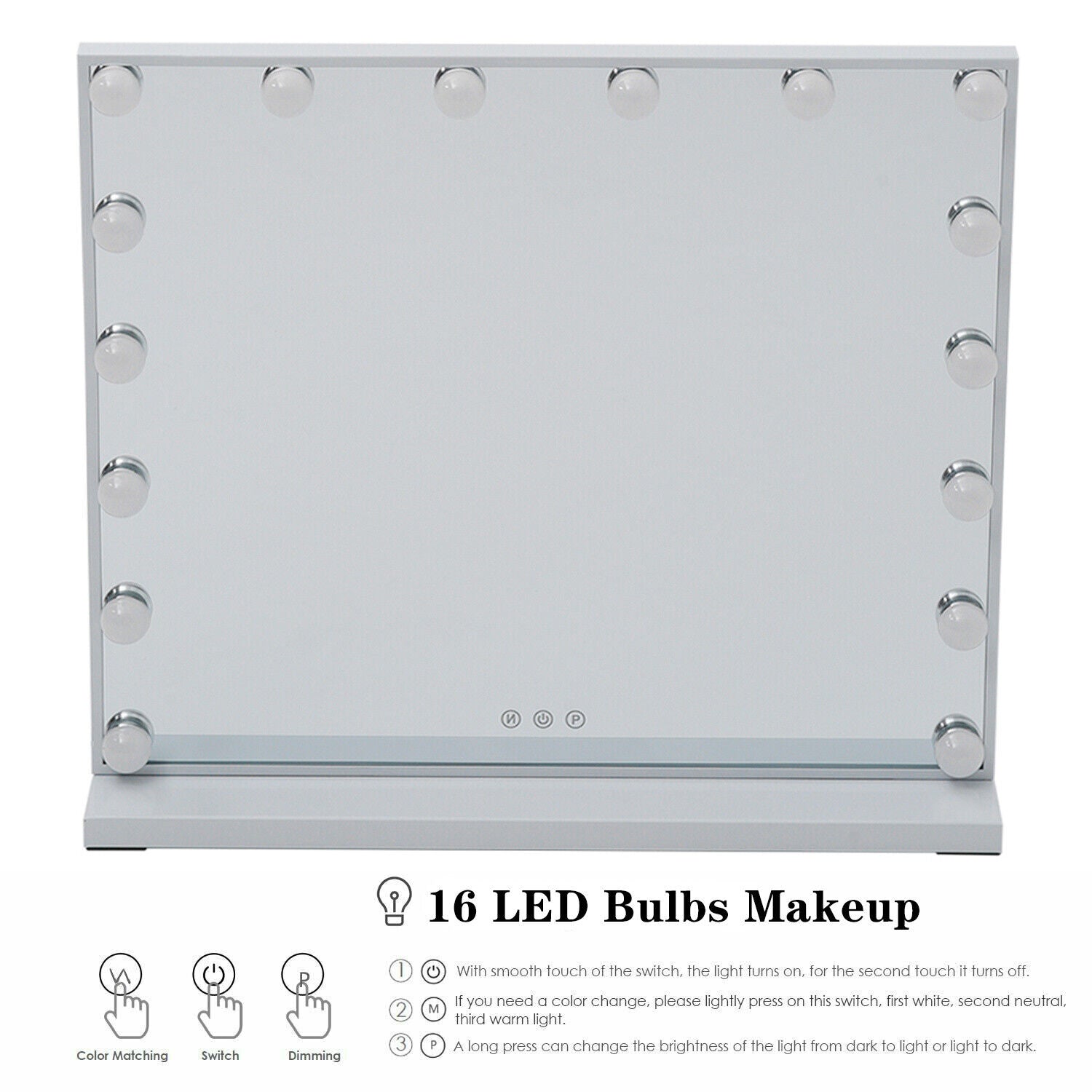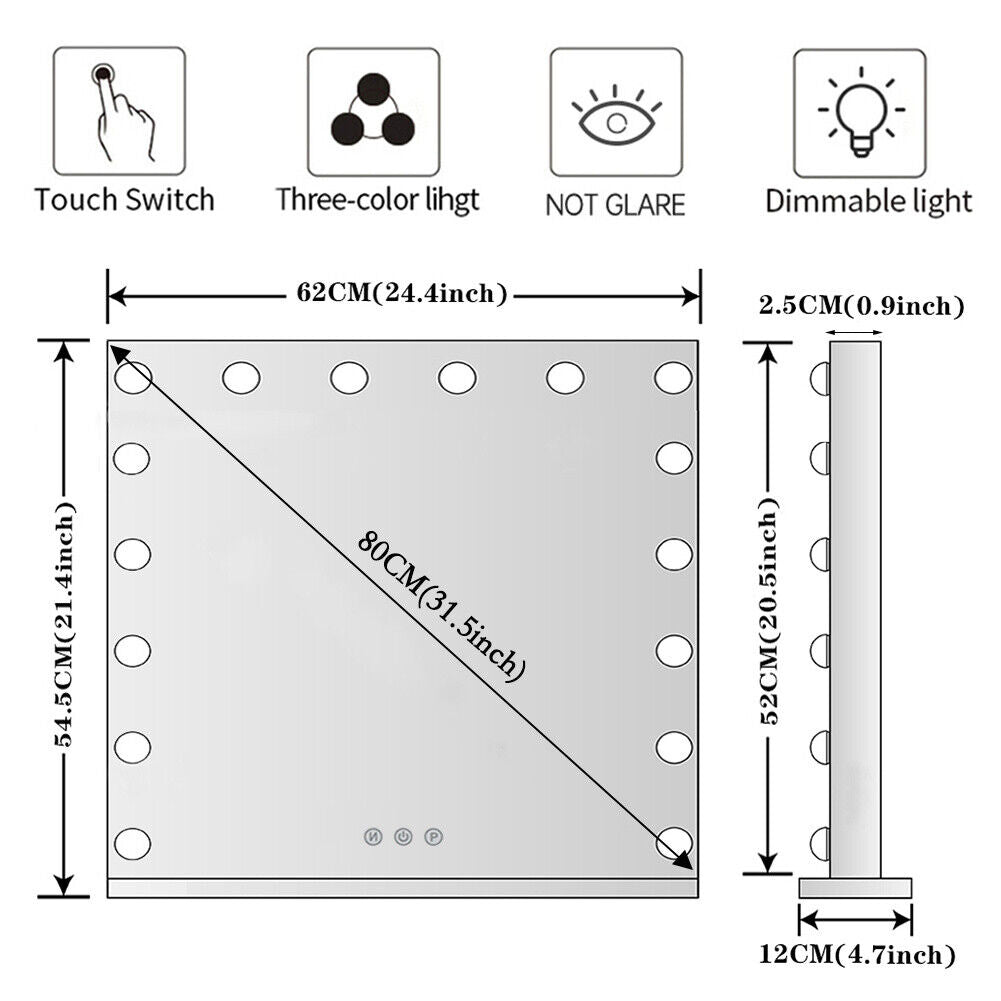 Large Hollywood Vanity Mirror Dimmable 16 LED Bulbs Makeup Mirror 3 Colour Light