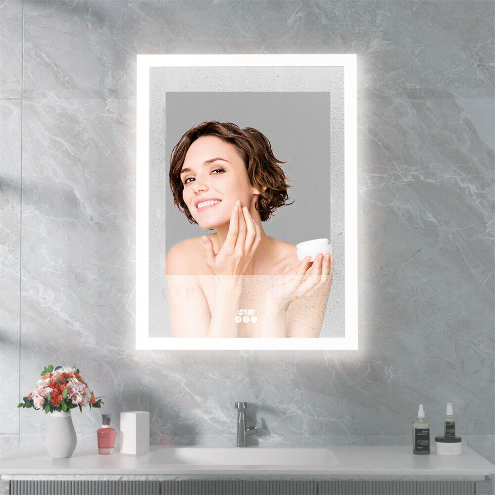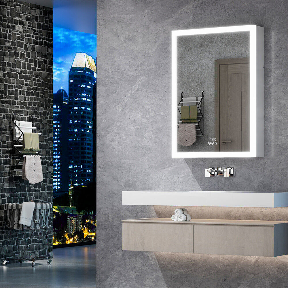 Large Illuminated LED Bathroom Mirror Cabinet Demister Sleek Aluminum Frame Unit