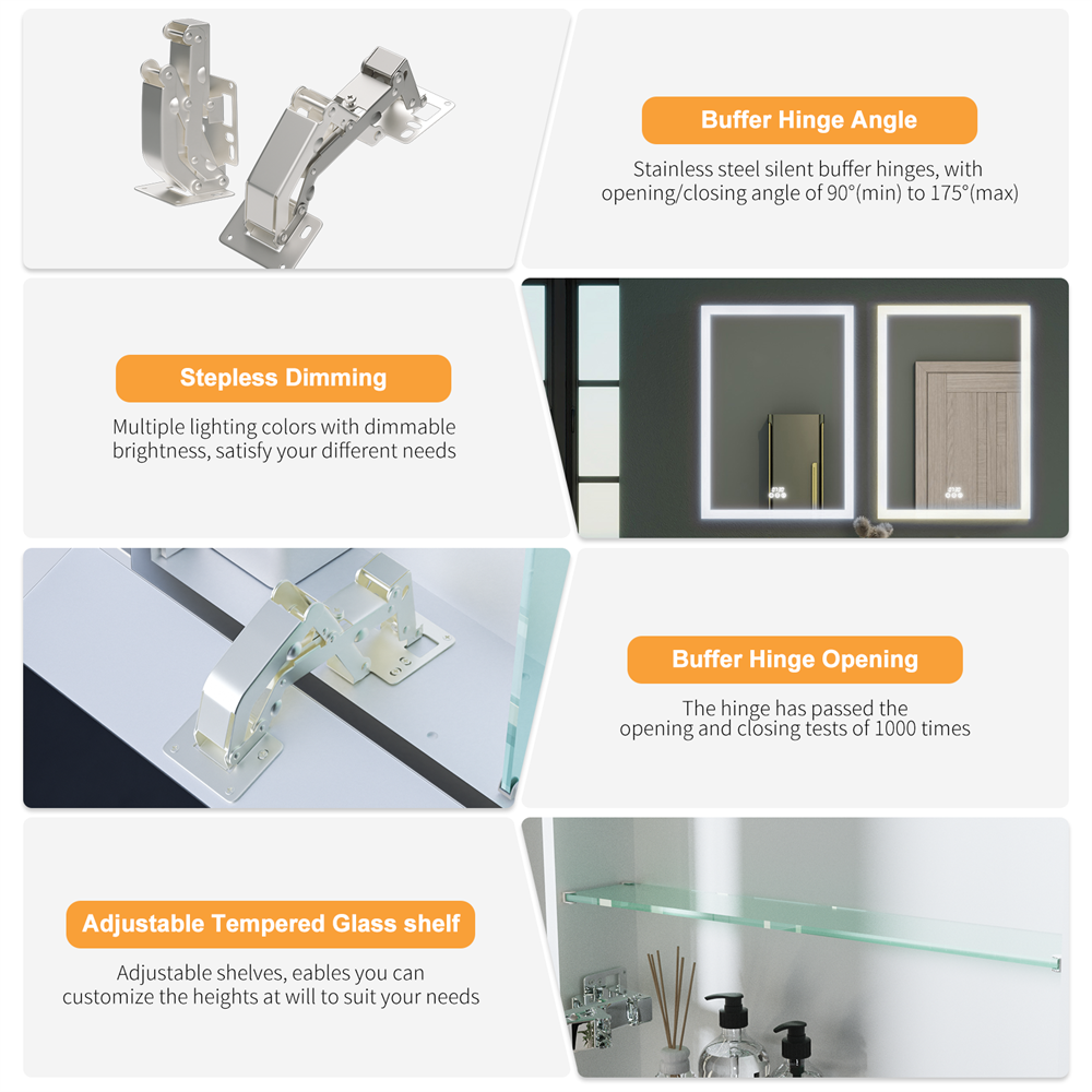 Features LED Lighted, Lighted, Touch Sensor, With Storage, Mirror Cabinet, WAll Mounted, Vanity Unit, 3 Colours LED Lights, Matte Surface