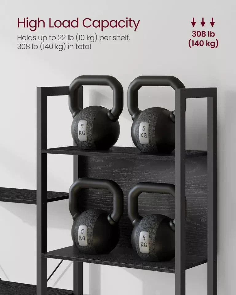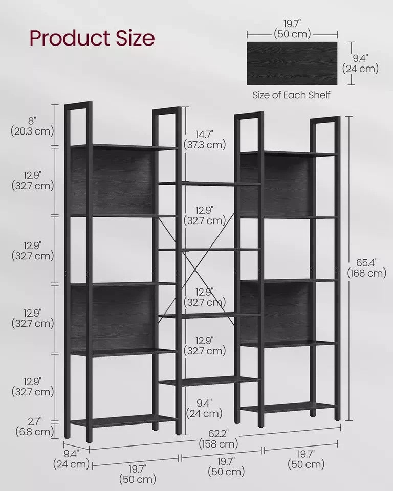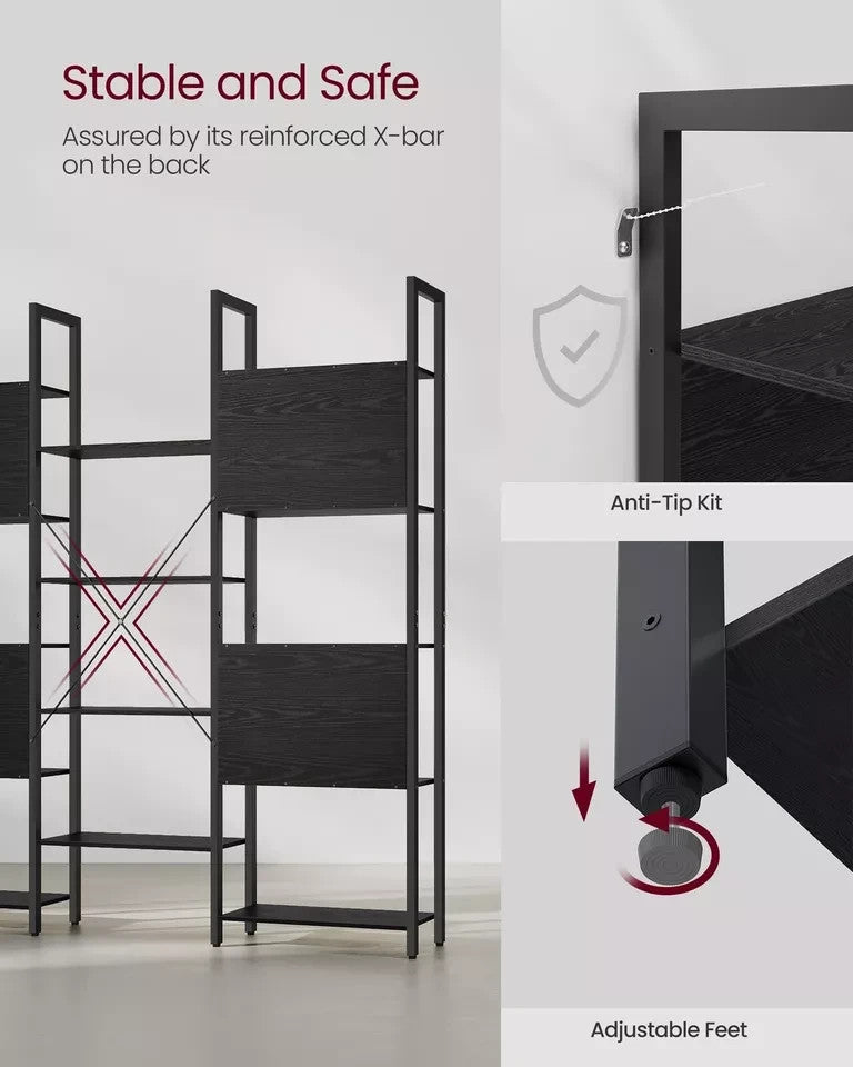 Large Industrial Bookcase Bookshelf Storage Shelves Metal Frame Black