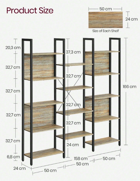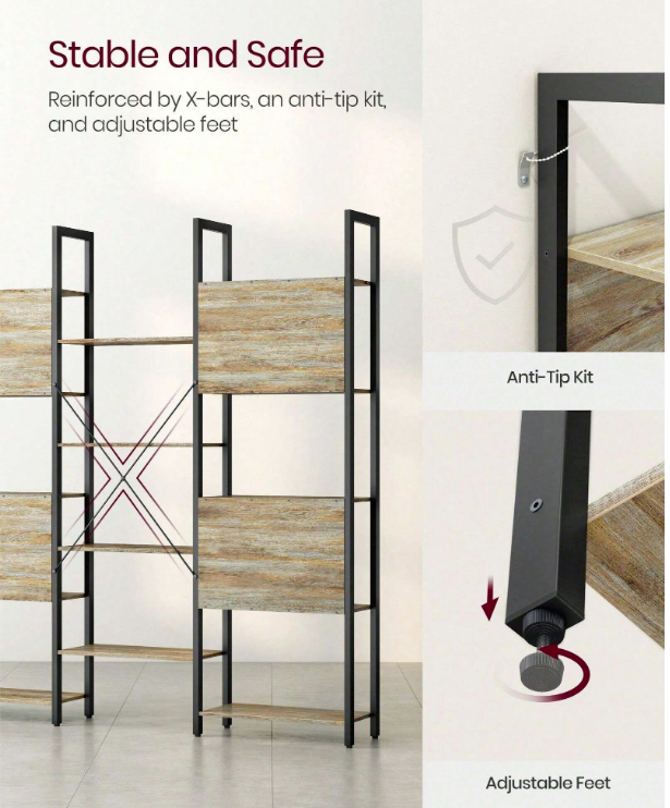 Large Industrial Bookcase Rustic Bookshelf Storage Shelves Metal Frame Display