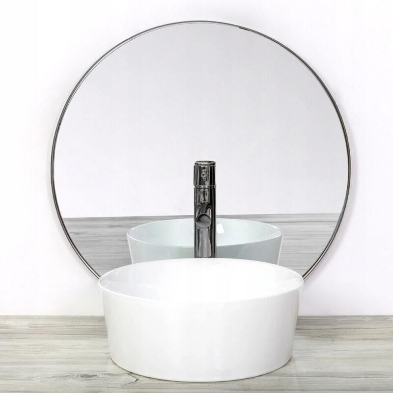 Large Industrial Round Wall Mirror Brushed Silver Metal Frame Mirror Bathroom UK