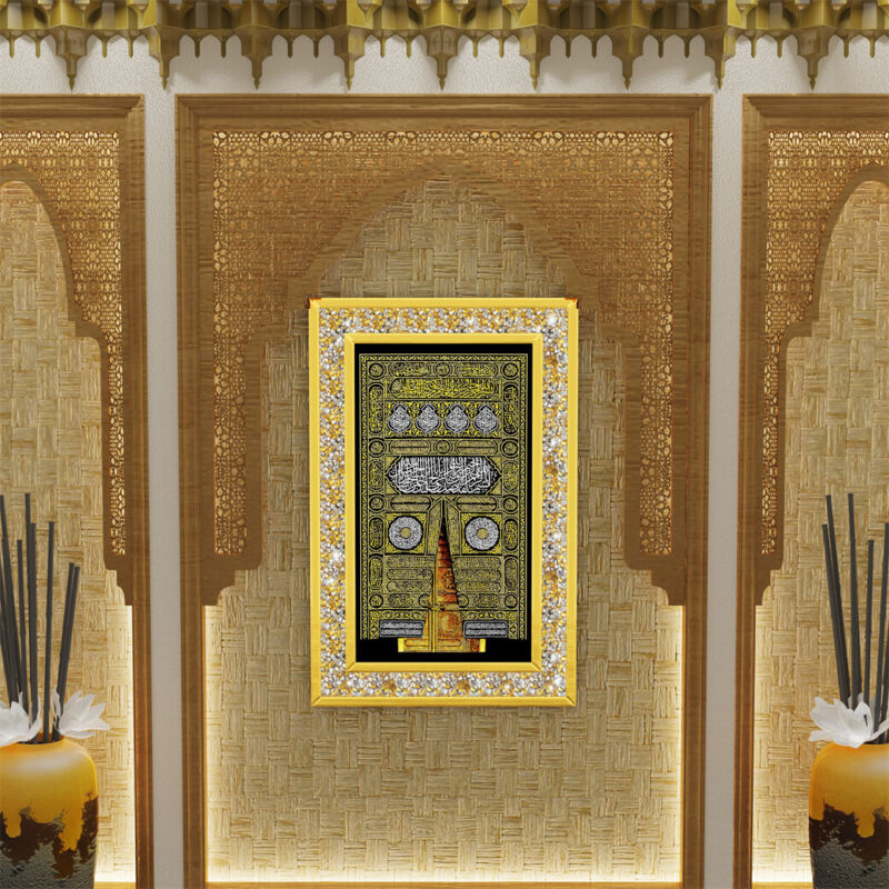 Large Islamic Gold Coloured Kaaba Door Wall Hanging Photo Frame Eid Ramadan Gift