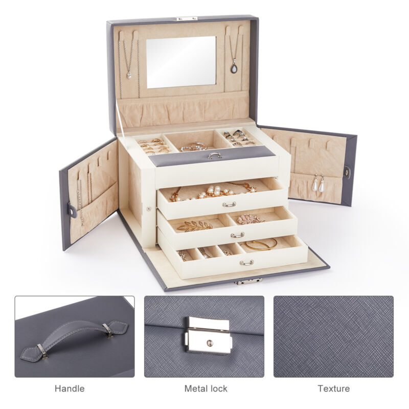 Large Jewellery Box Organiser with 4 Drawers Luxury Storage Case Cabinet Grey