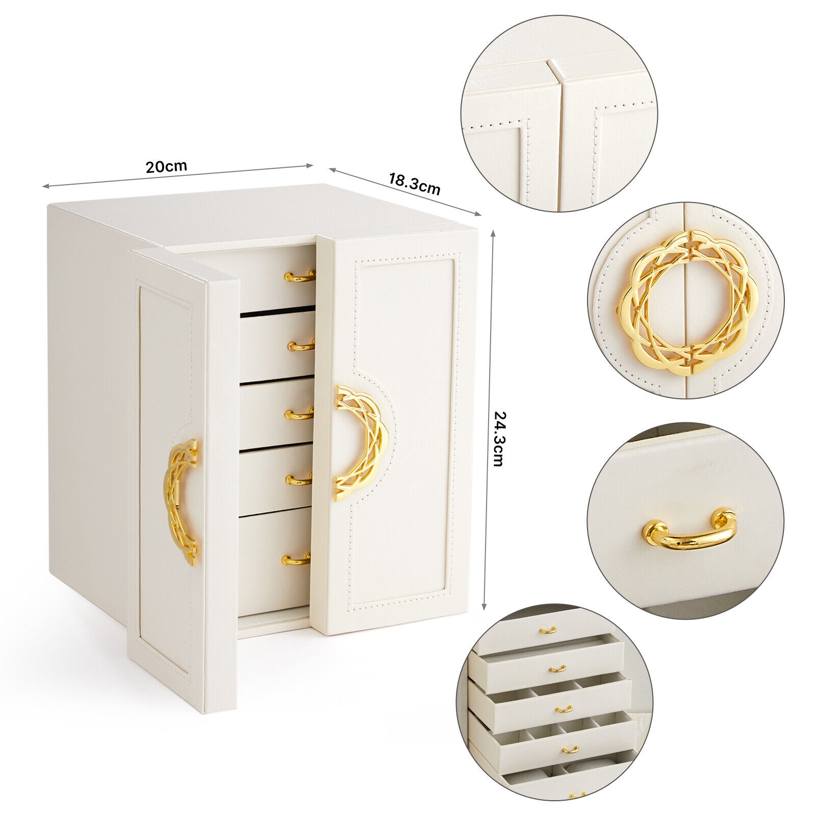 Large Jewellery Box Organizer with Drawers 5 Layers Storage Case Necklace Ring