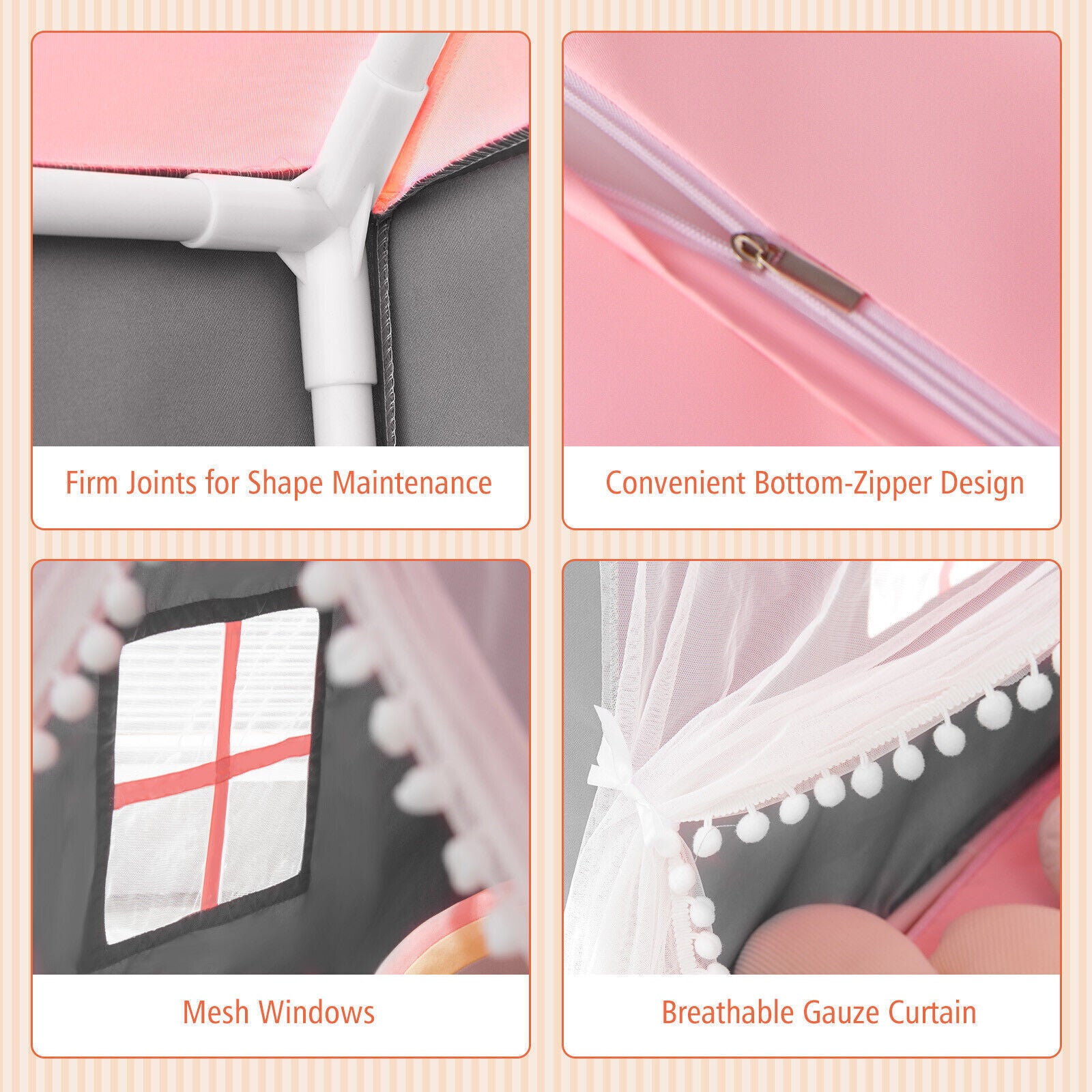 Large Kids Play House Children Indoor Outdoor Castle Fairy Tent with Light & Mat