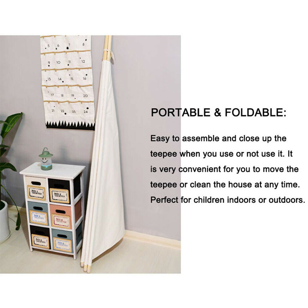 Large Kids Teepee Tent Wooden Playhouse Black White Pink Xmas Gift For Boy Girl