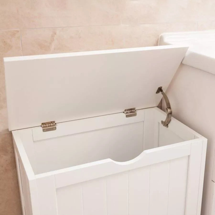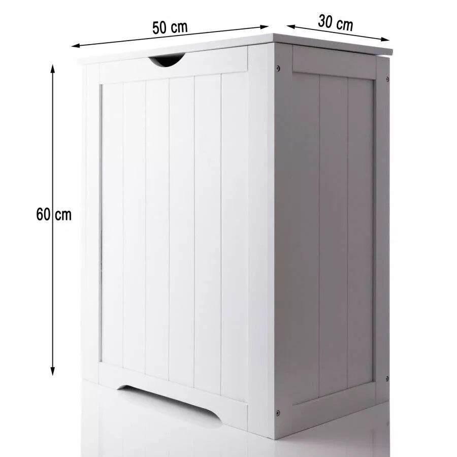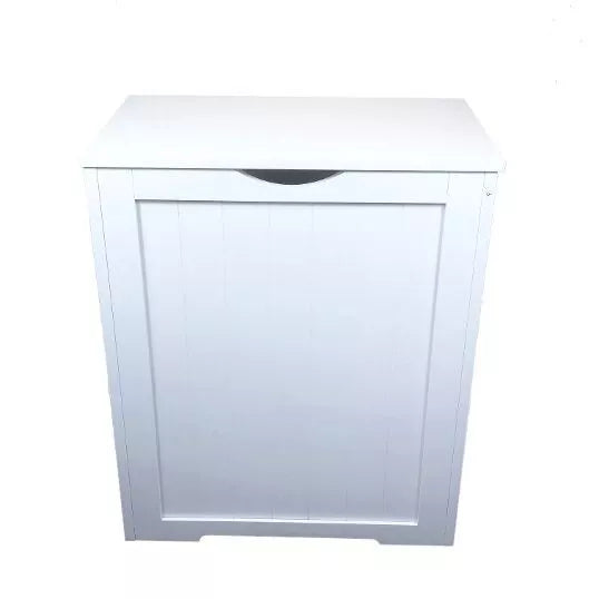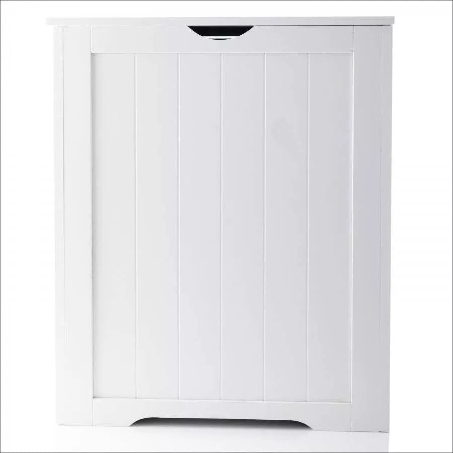Large Laundry Linen Cabinet Bathroom Storage Chest Wooden Linen Hamper Bin-White