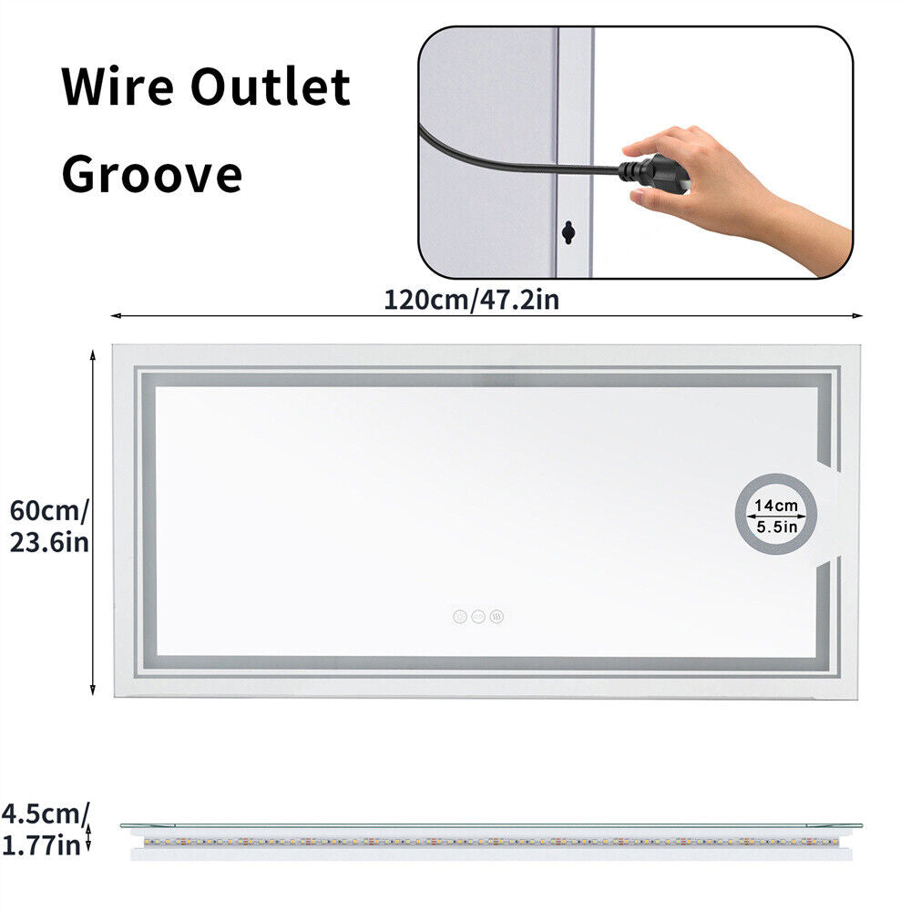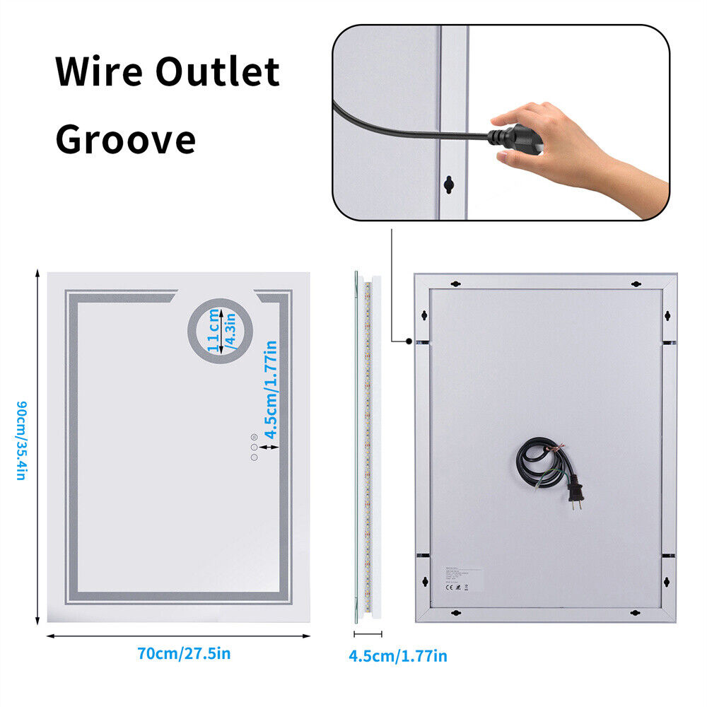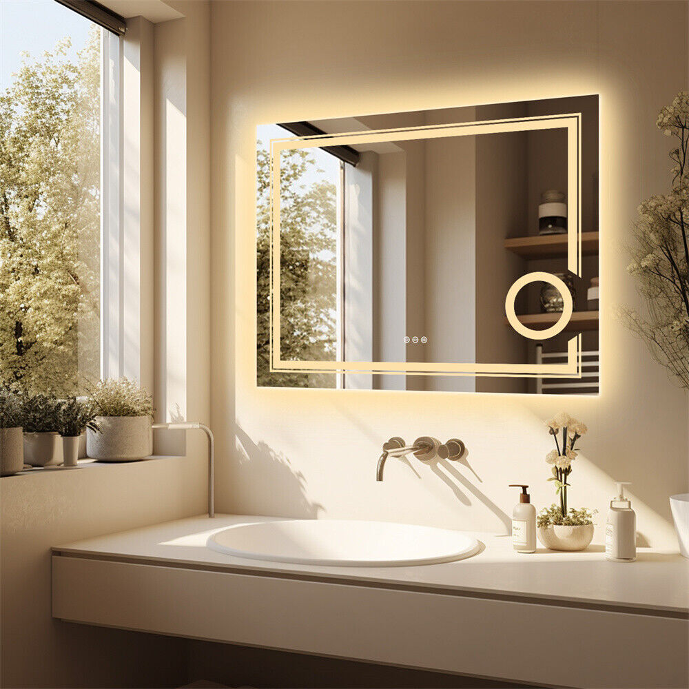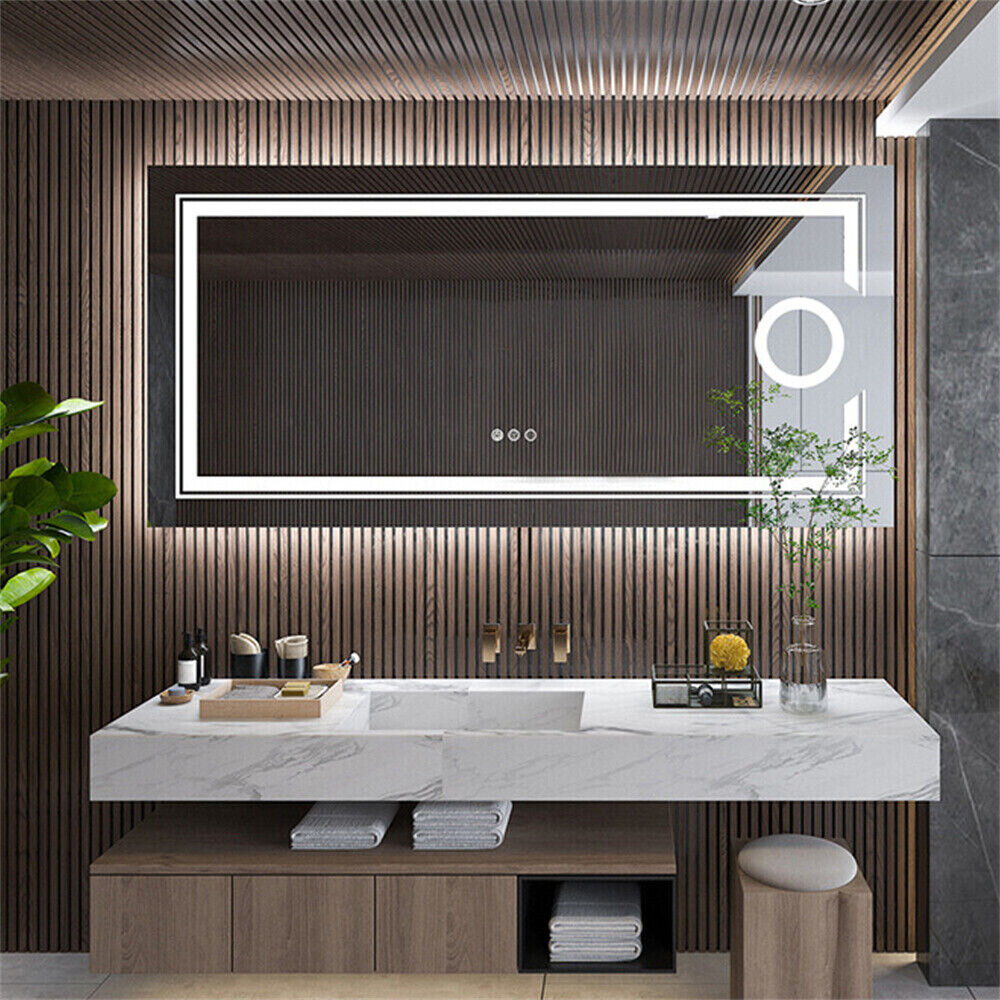 Large LED Bathroom Mirror Bath Backlit Anti-Fog Mirror 3X Magnifier Light Change