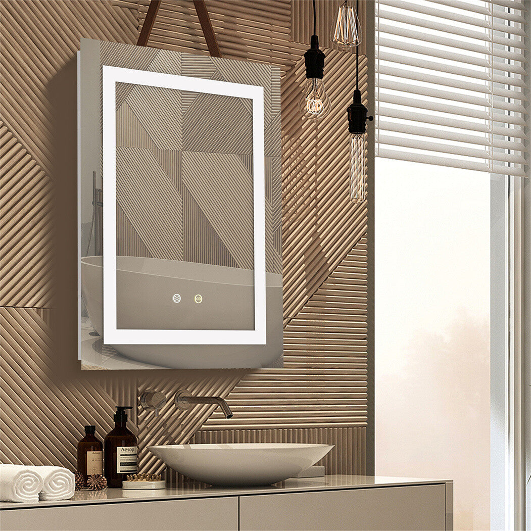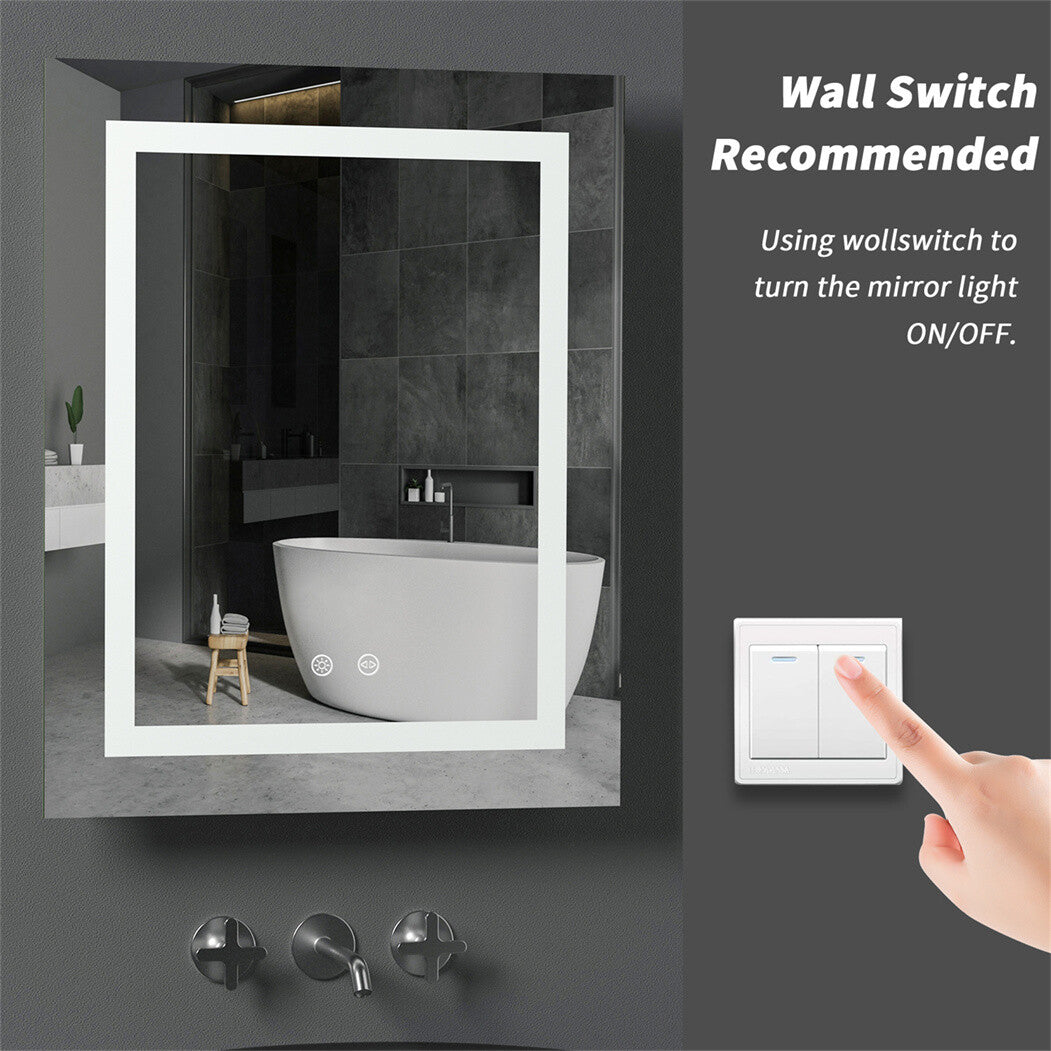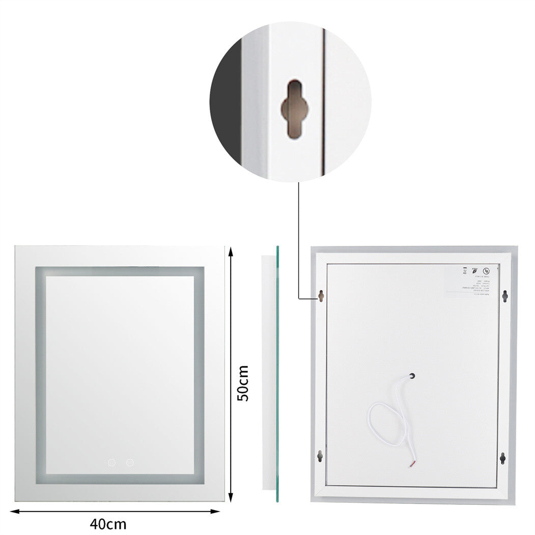 Large LED Bathroom Rectangle Mirror Anti-fog Touch 500x400mm Warm Light Backlit