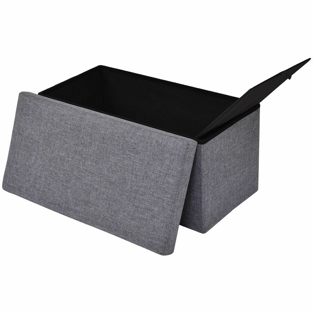 Large Linen Folding Storage Ottoman Pouffe Double Seat Foot Stool Storage Boxes