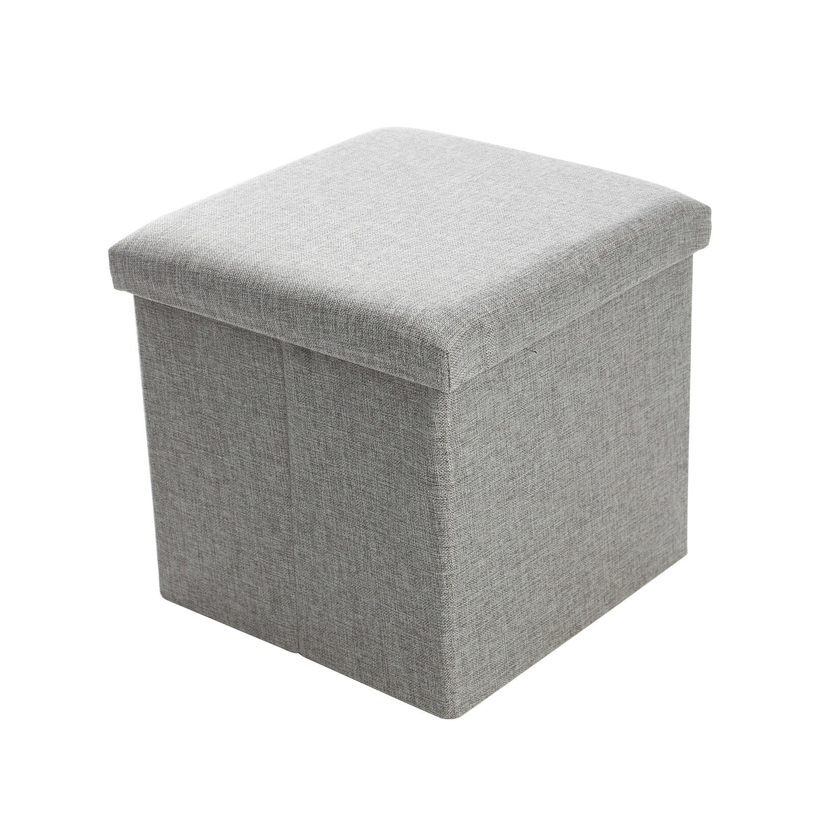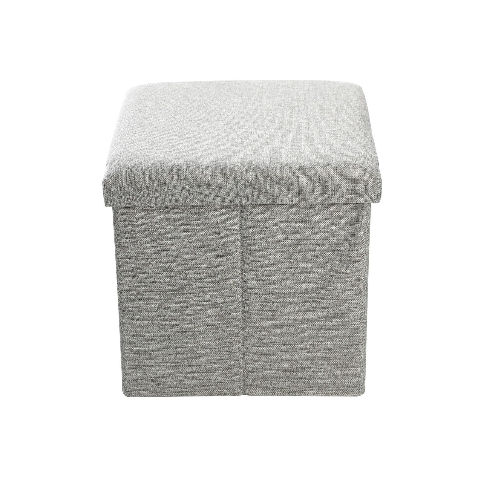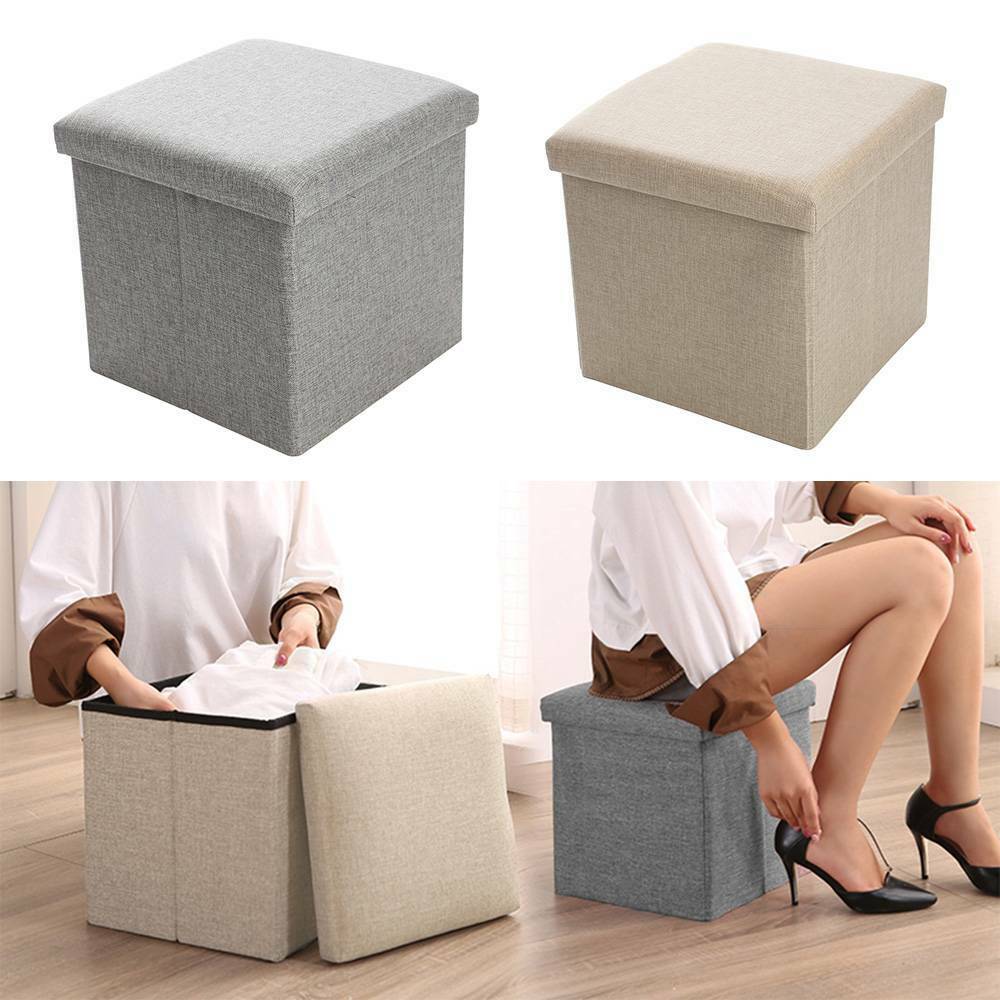 LARGE LINEN FOLDING STORAGE OTTOMAN POUFFE SEAT FOOT STOOL STORAGE BOX GREY