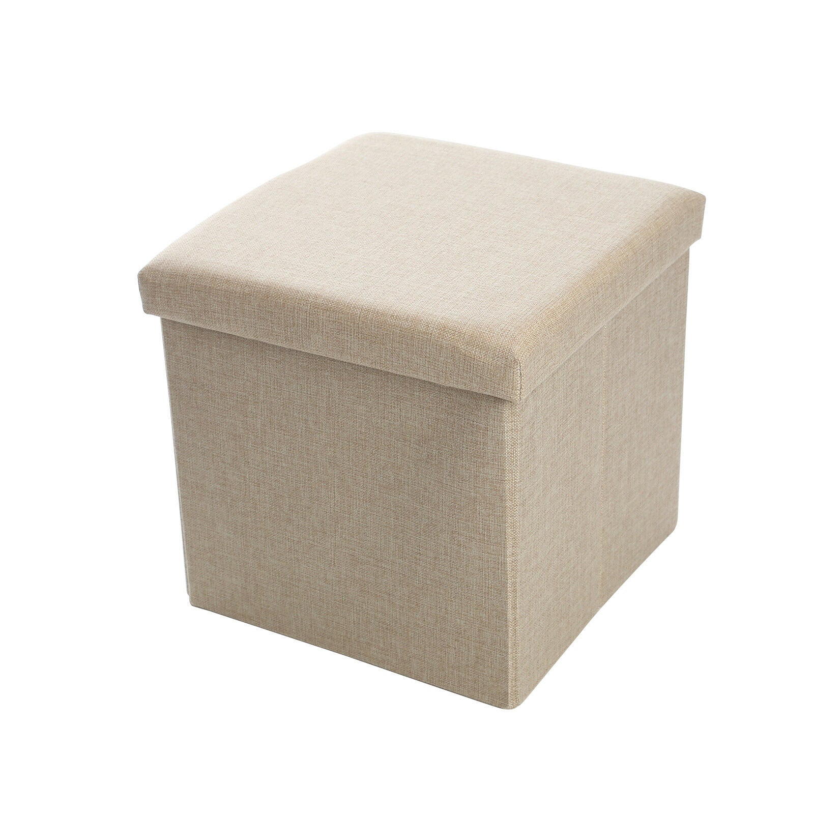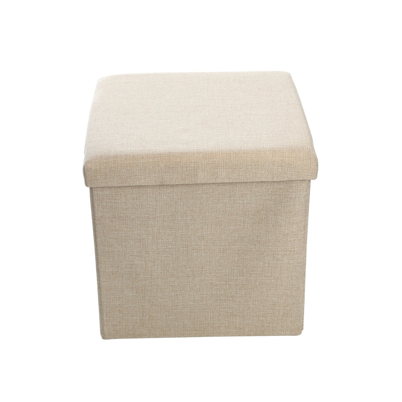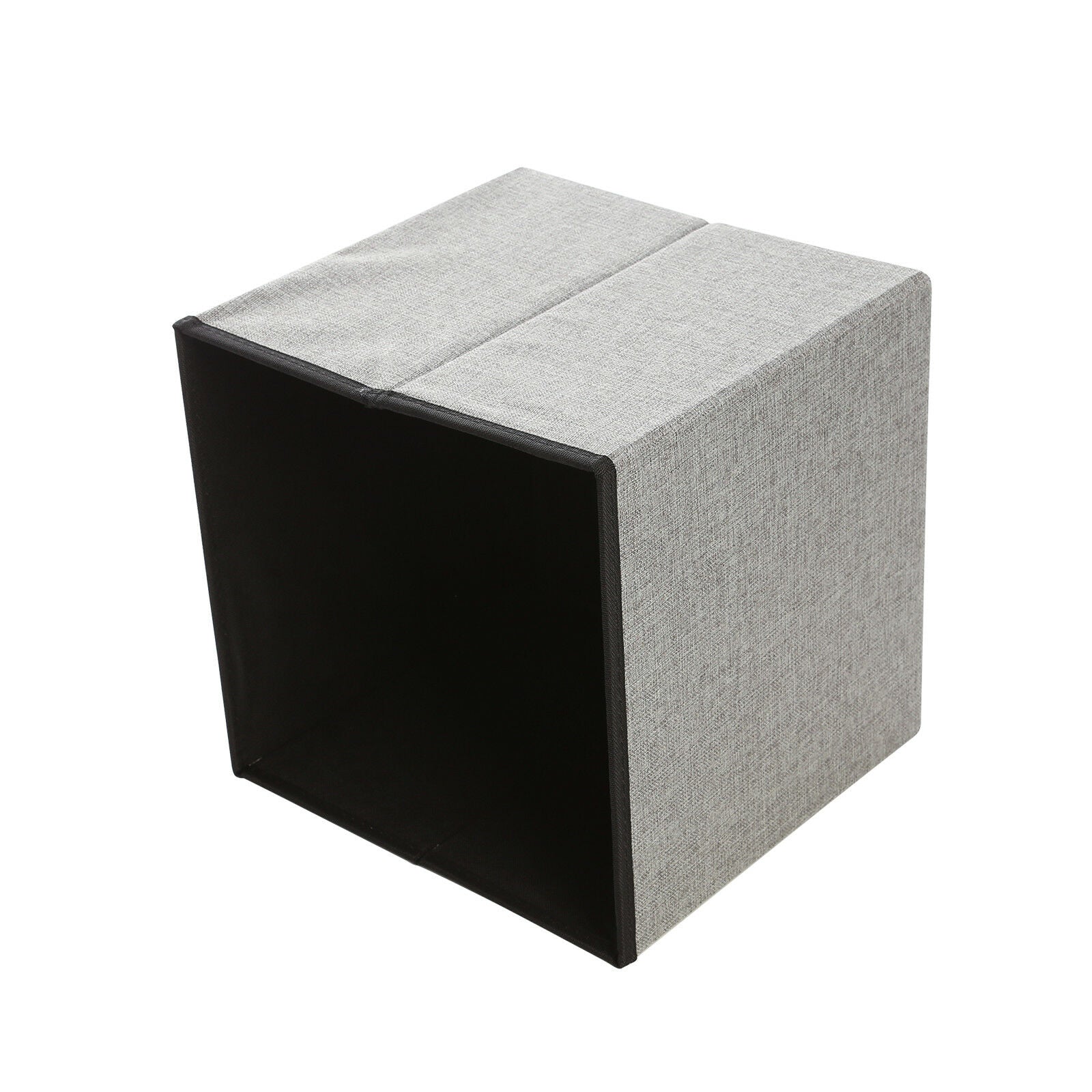 LARGE LINEN FOLDING STORAGE OTTOMAN POUFFE SEAT FOOT STOOL STORAGE BOX GREY