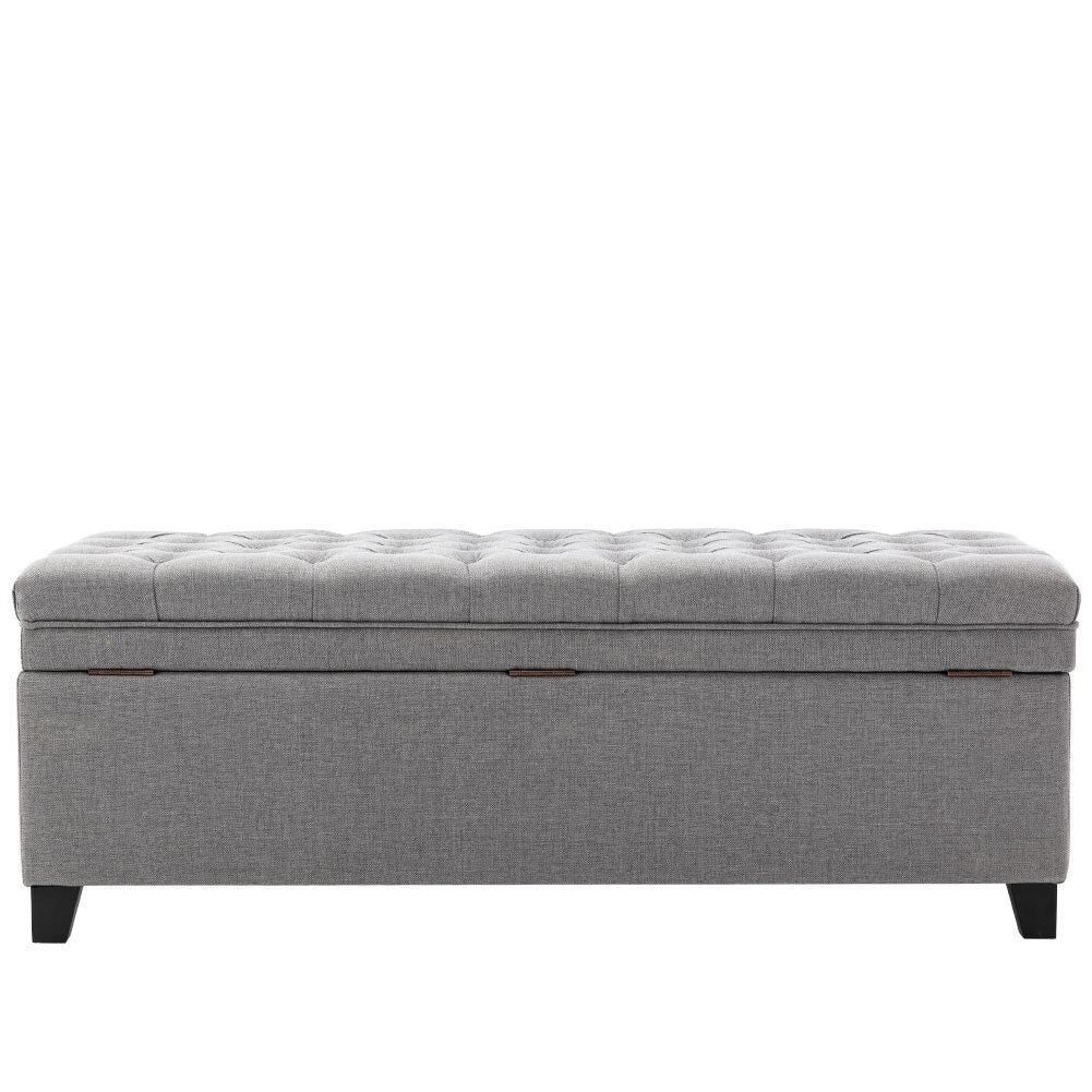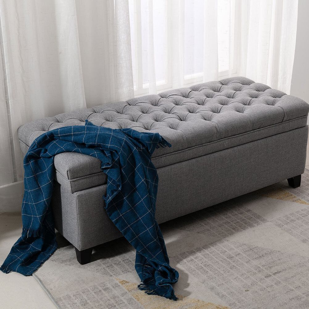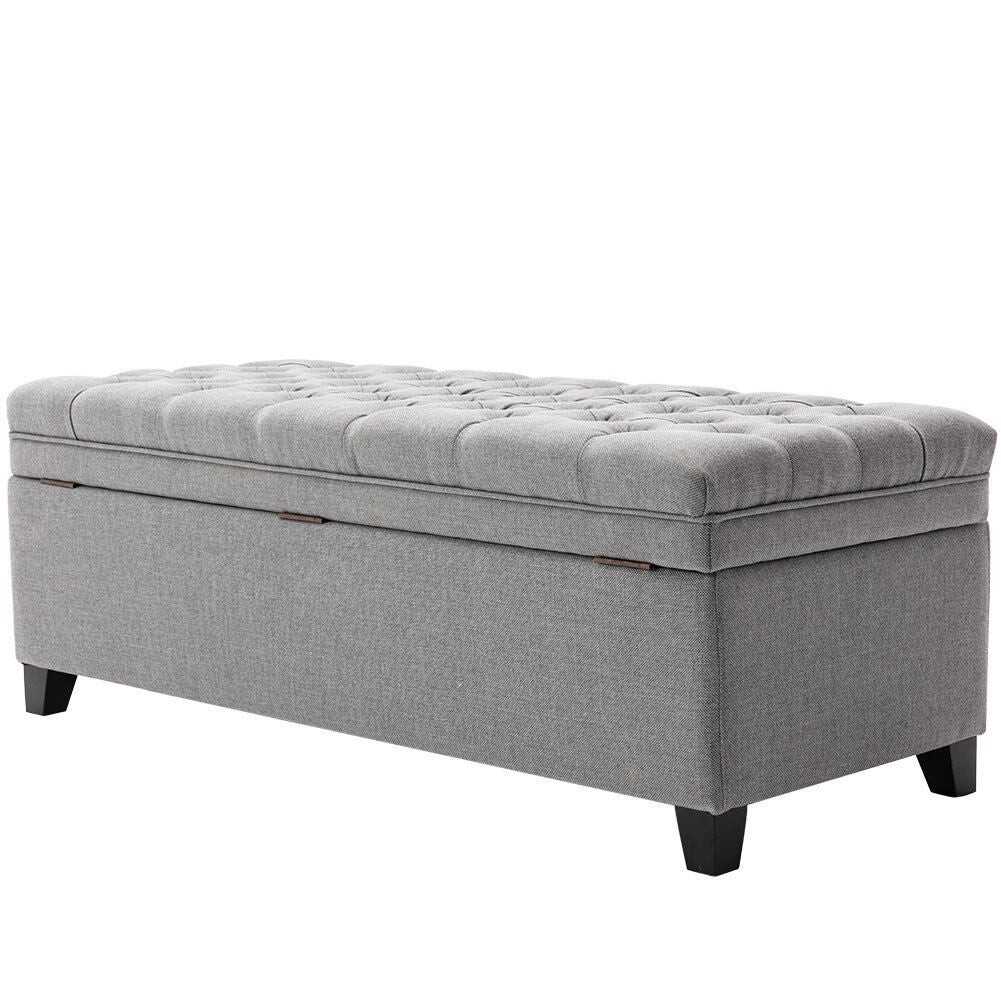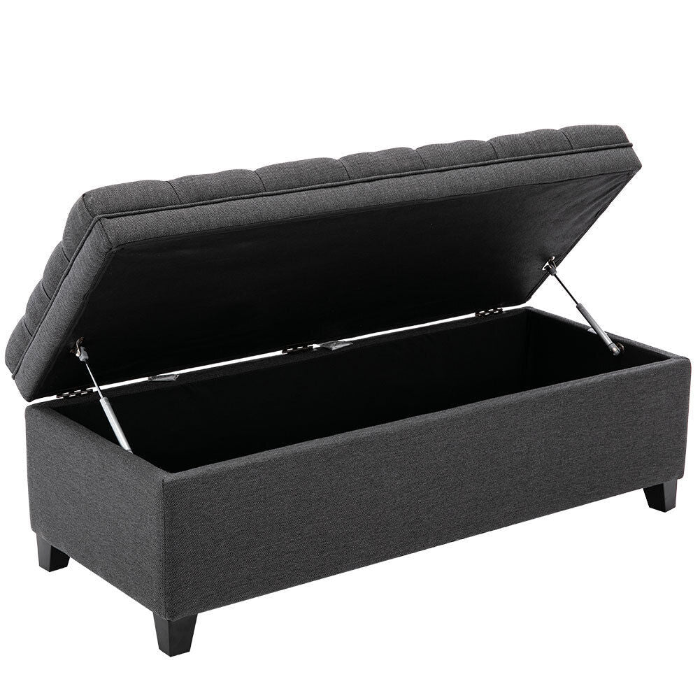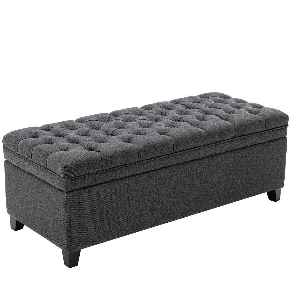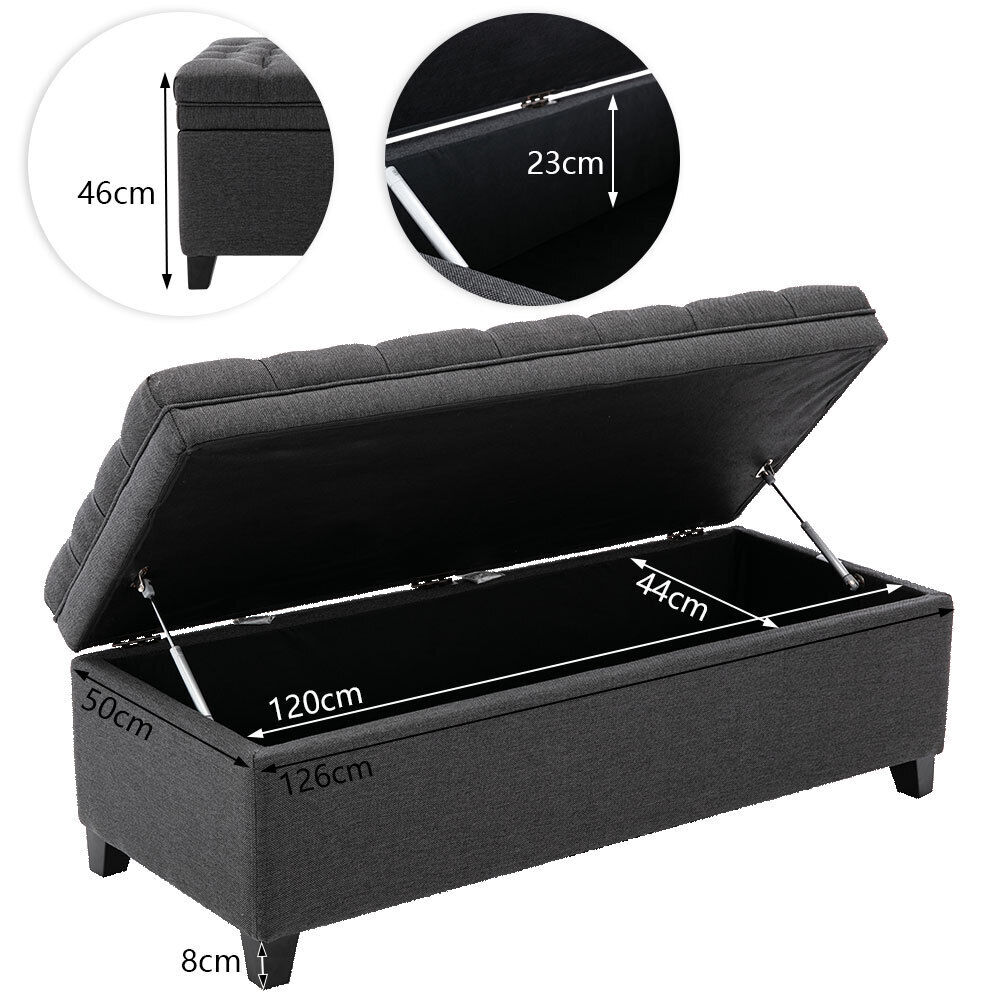 Large Linen Ottoman w/ Storage Button-Tufted Bedroom Bench Hinge End Of Stool