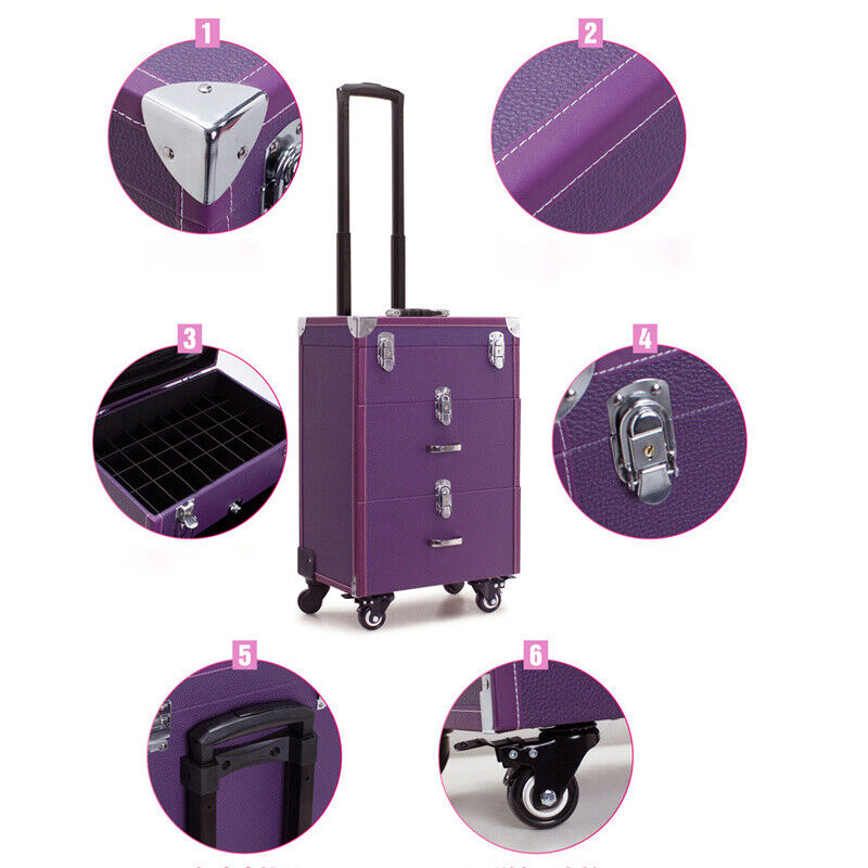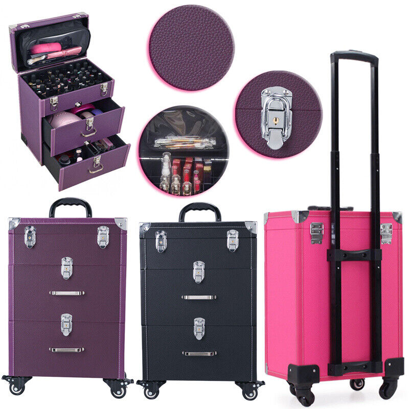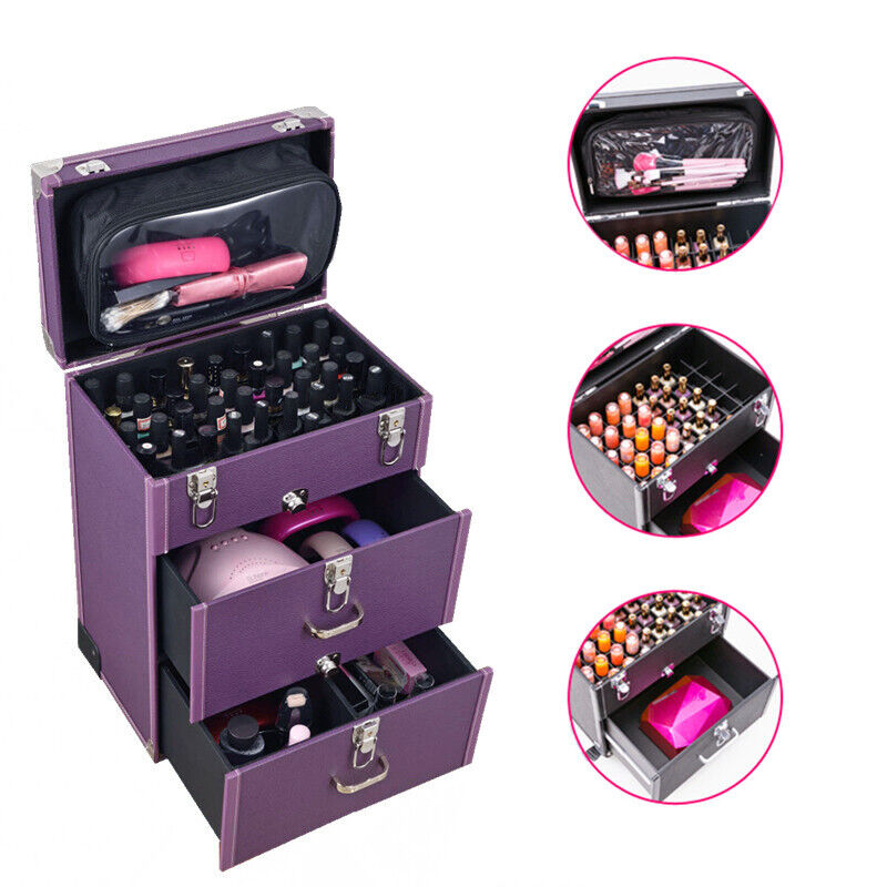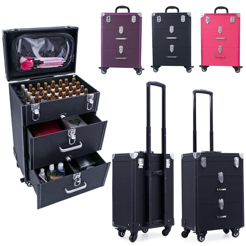 Large Makeup Case Hairdressing Nail Polish Trolley Cosmetic Vanity Storage Box