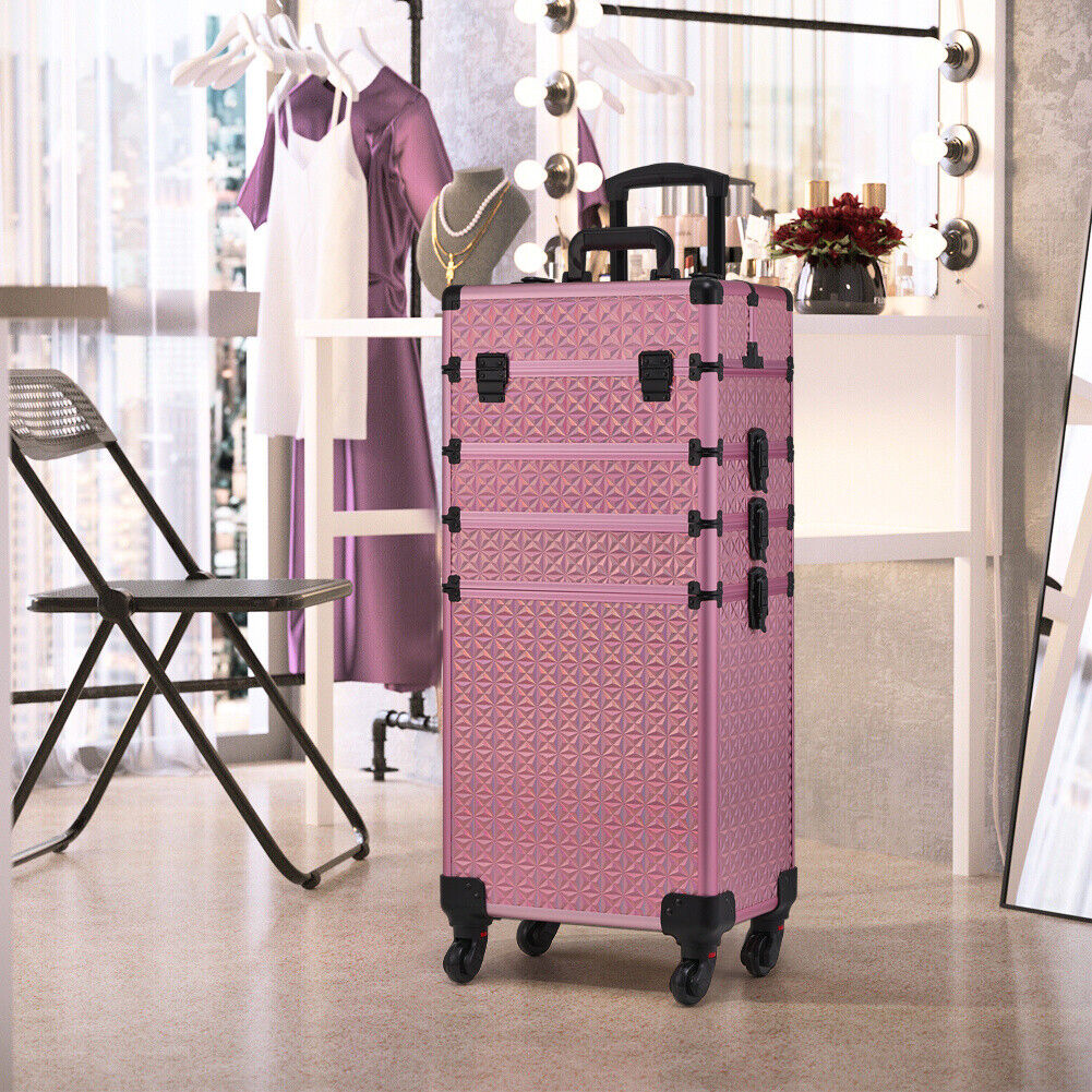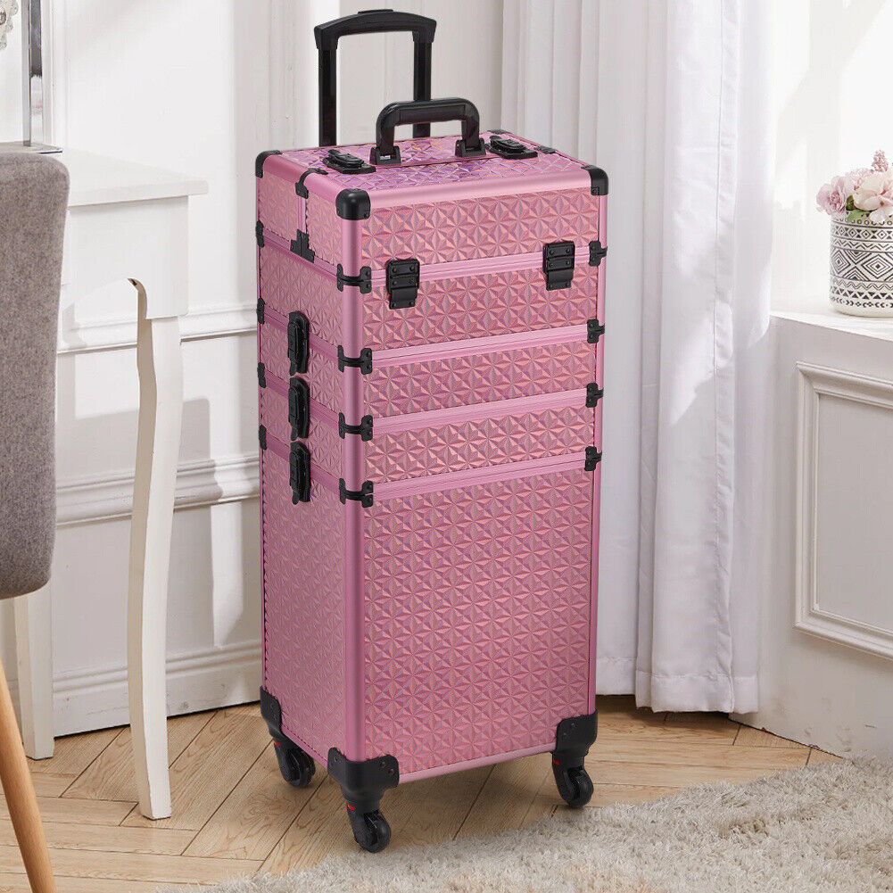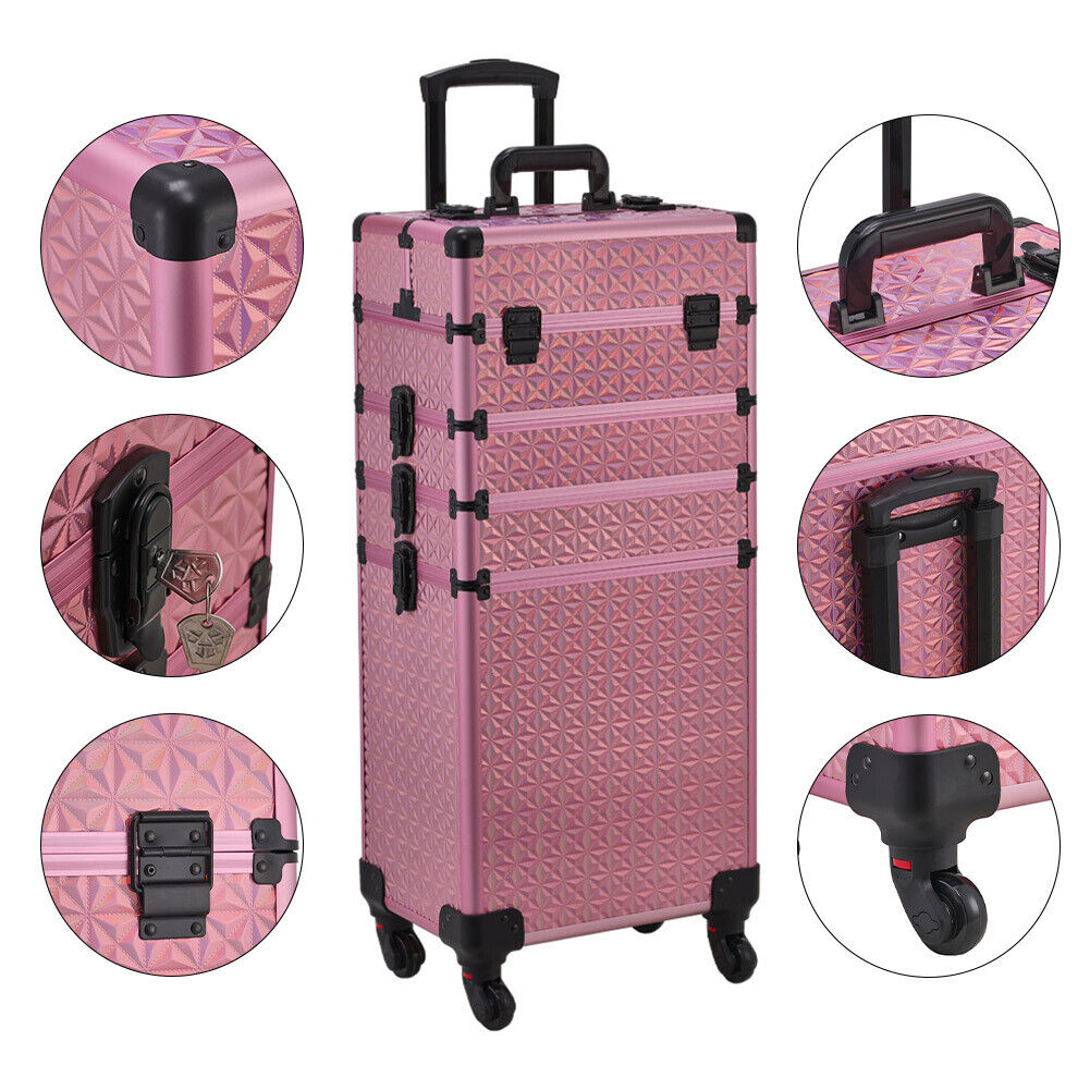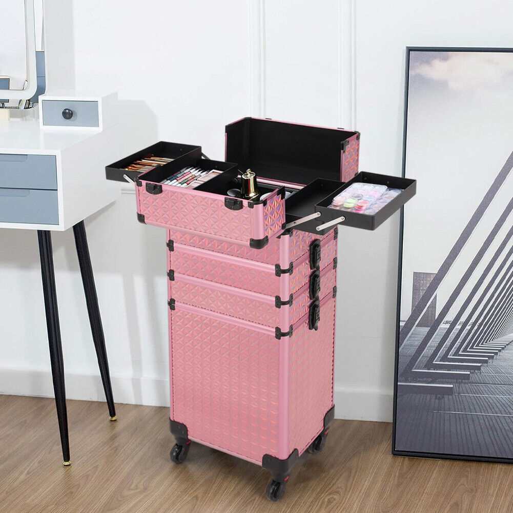 Large Makeup Trolley Case Beauty Vanity Hairdressing Case on Wheels with Drawers