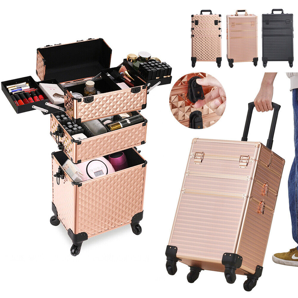 Large Makeup Trolley Case Mobile Beauty Vanity Hairdressing Case with Drawer Box