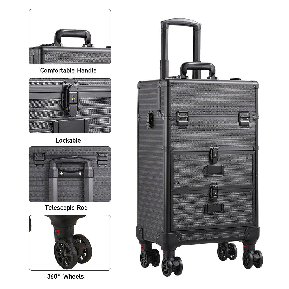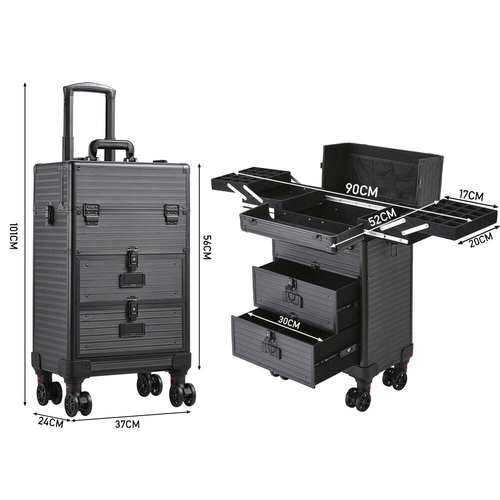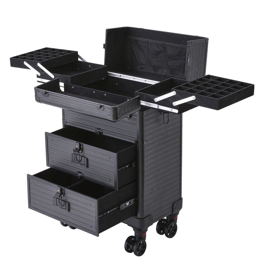 Large Makeup Trolley Train Case Beauty Cosmetic Vanity Case Box on Wheel Drawer