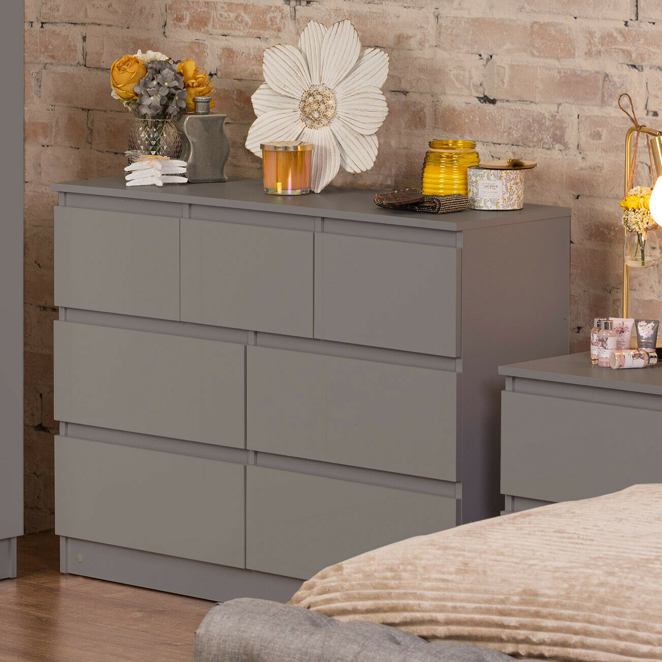 Large Matt Grey Finish 7 Drawer Merchant Chest. Modern Style. Bedroom Furniture