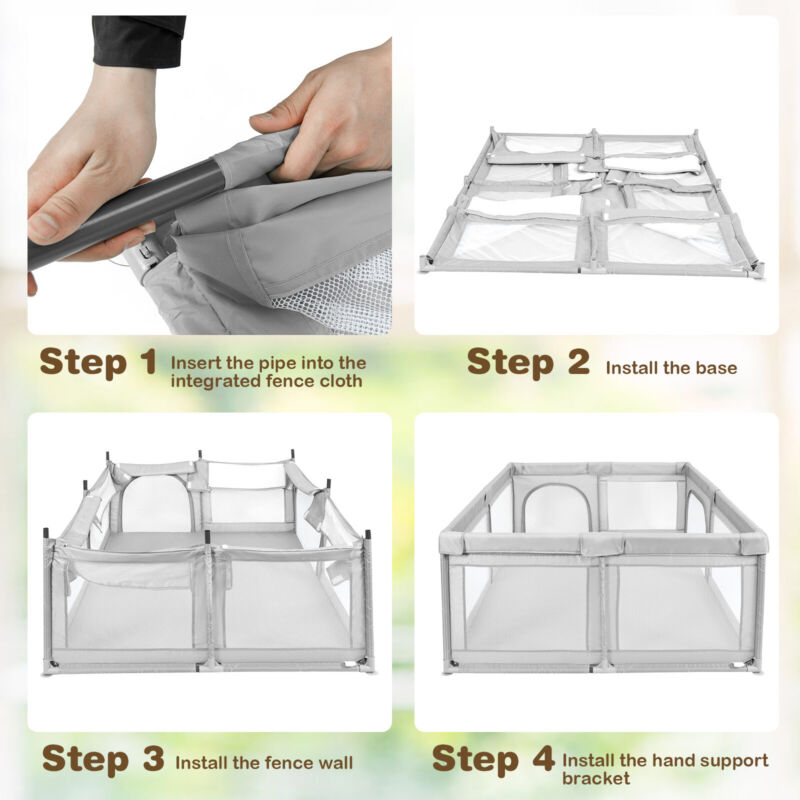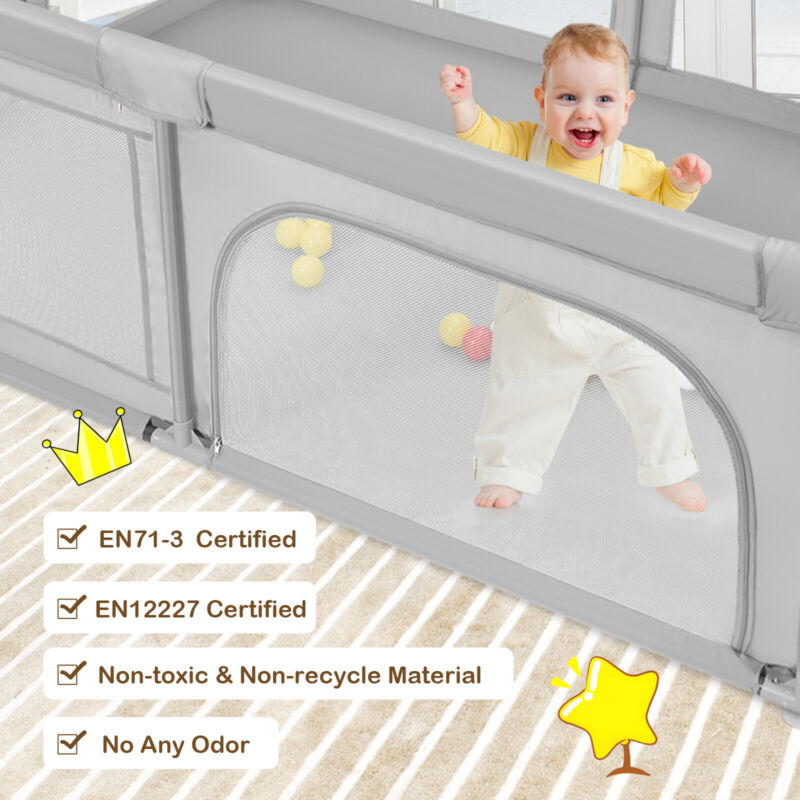 Large Mesh Baby Playpen Kids Infant Safety Yard Activity Center with Ocean Balls