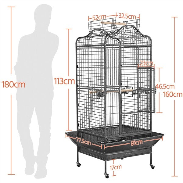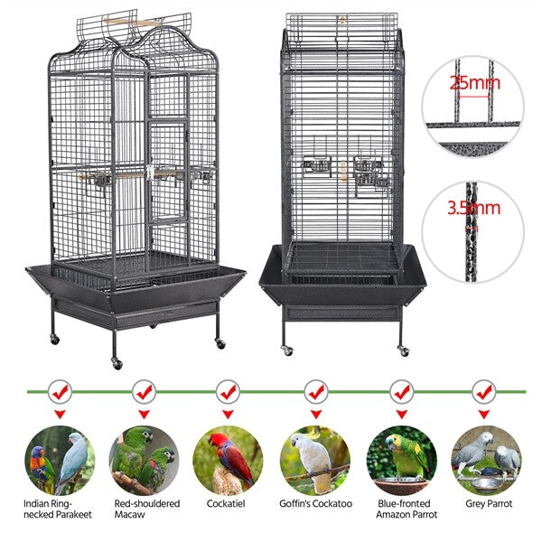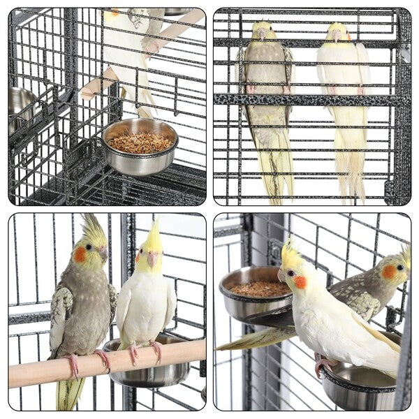 Large Metal Bird Cage Open Playtop for African Grey Parrot Cockatiels w/Stand
