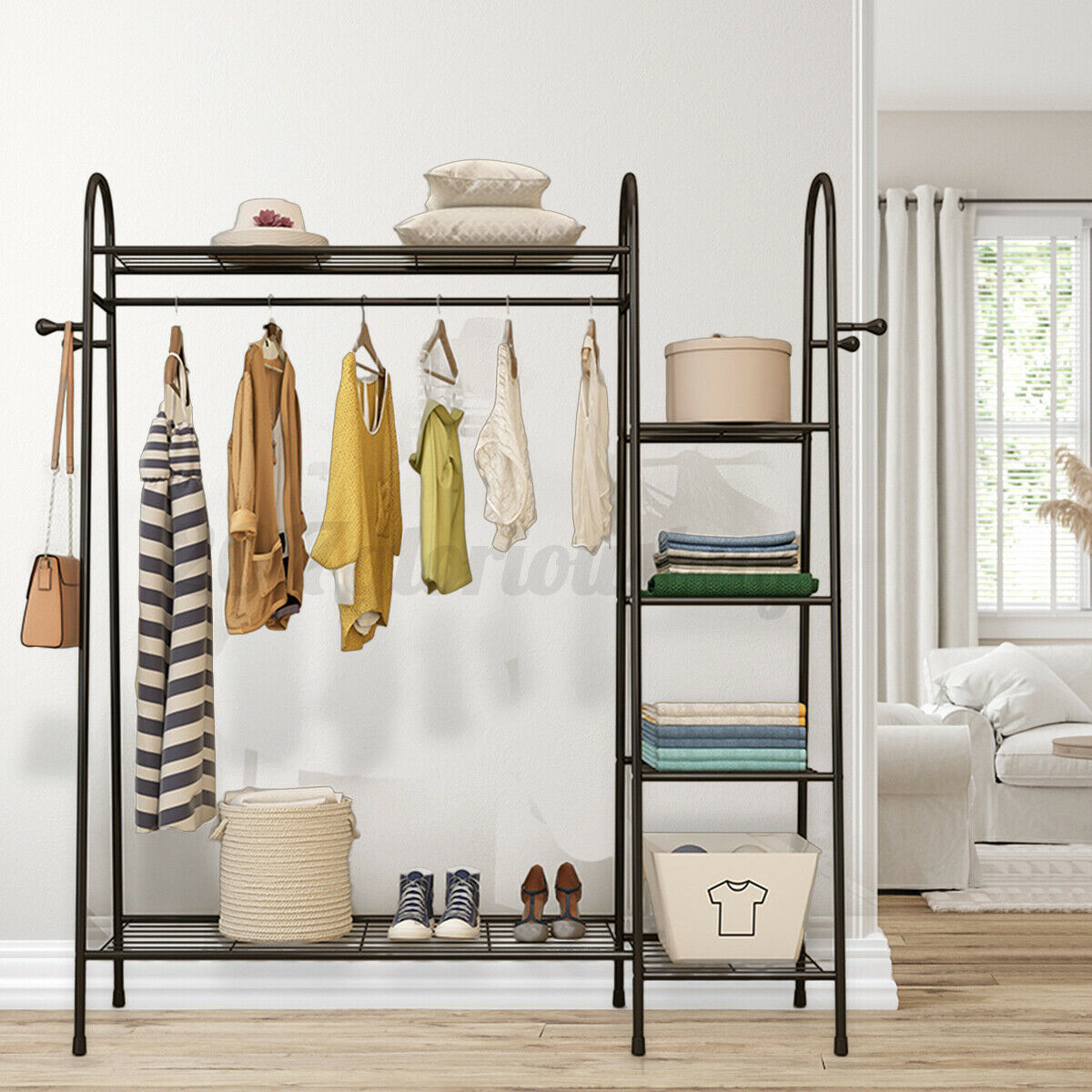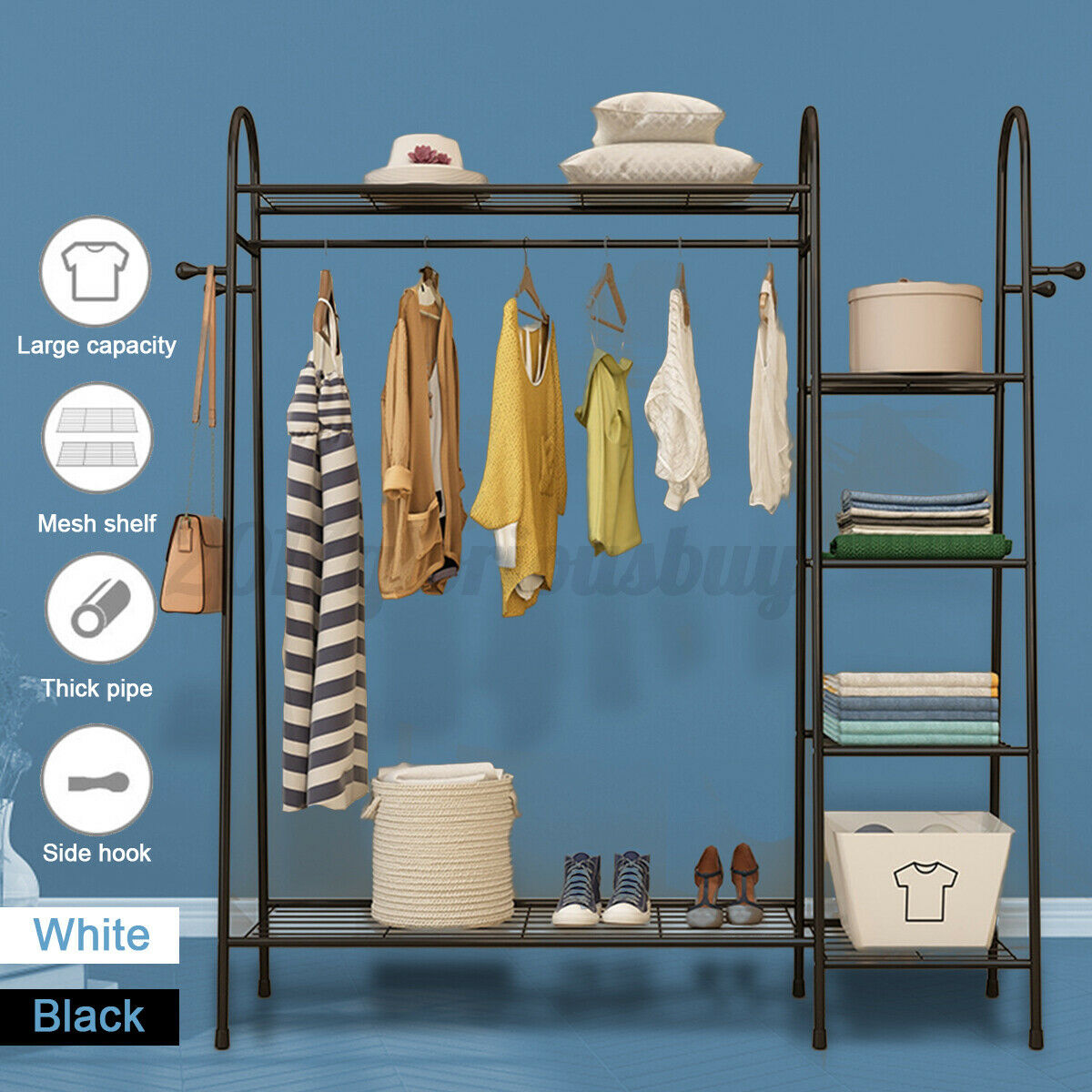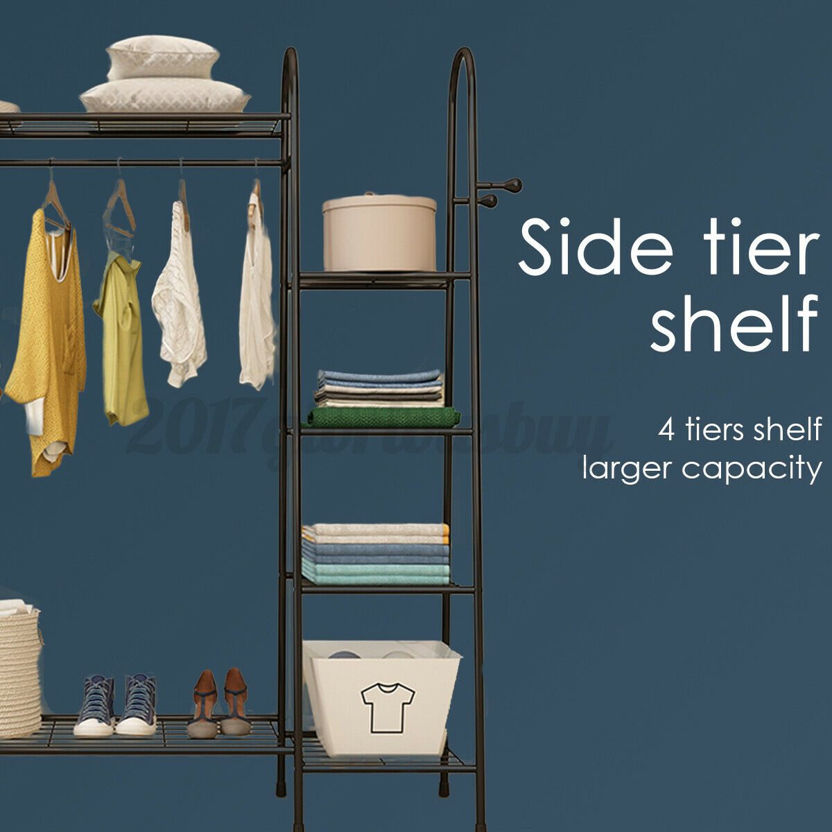 Large Metal Clothes Rack Hallway Shoe Shelf Storage Organiser Coat Hat Hooks