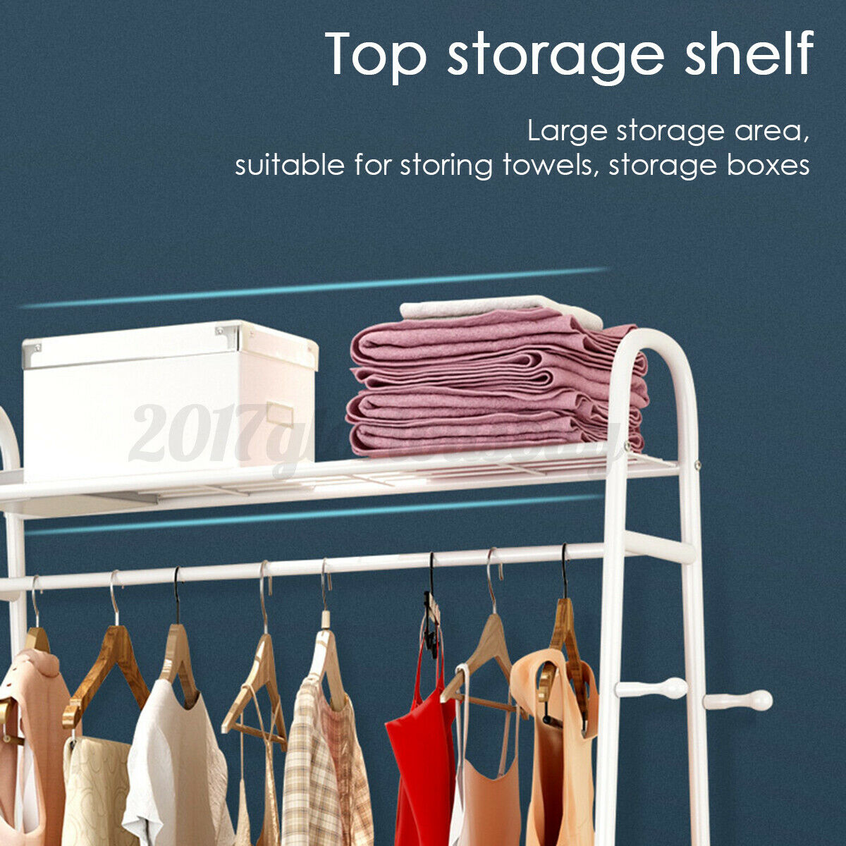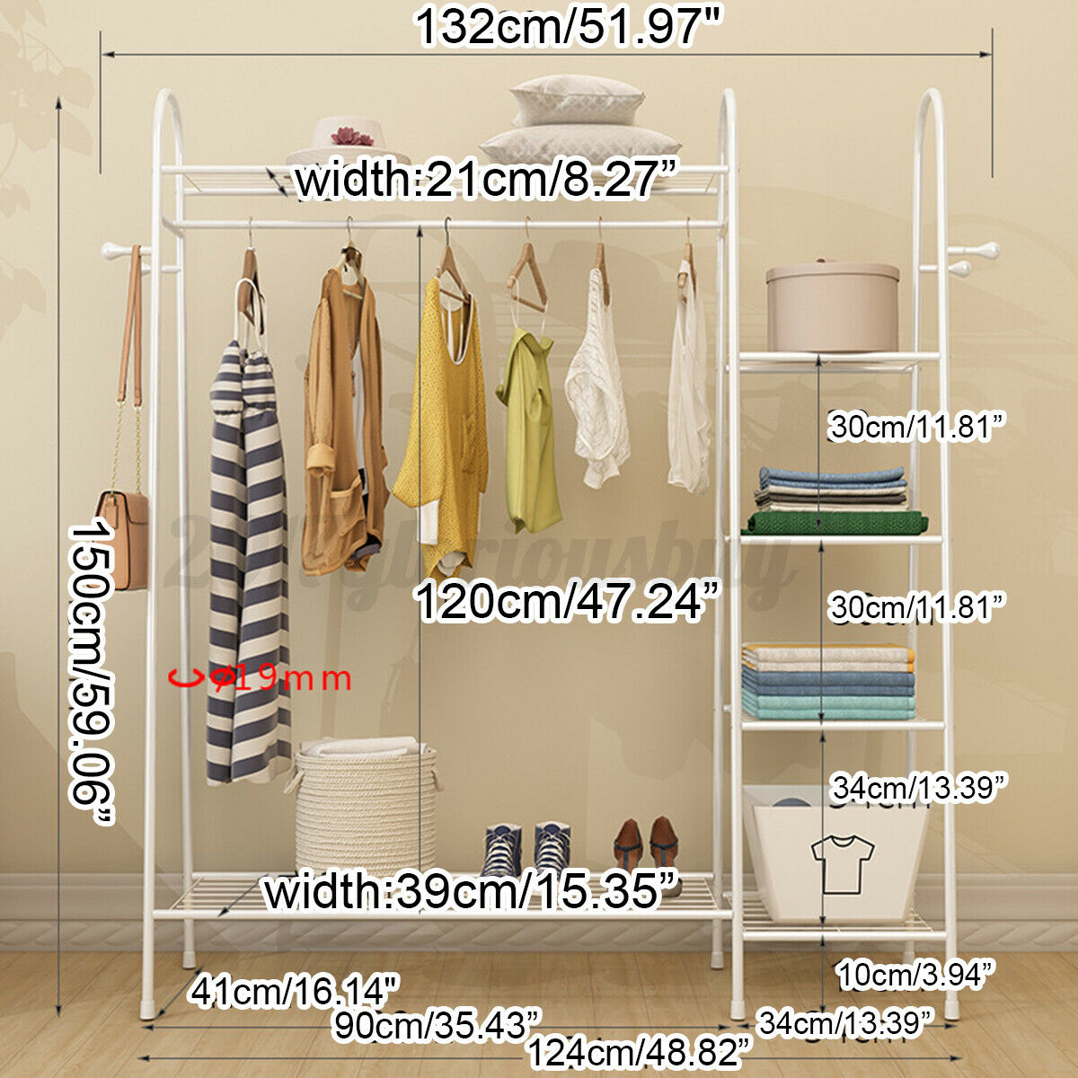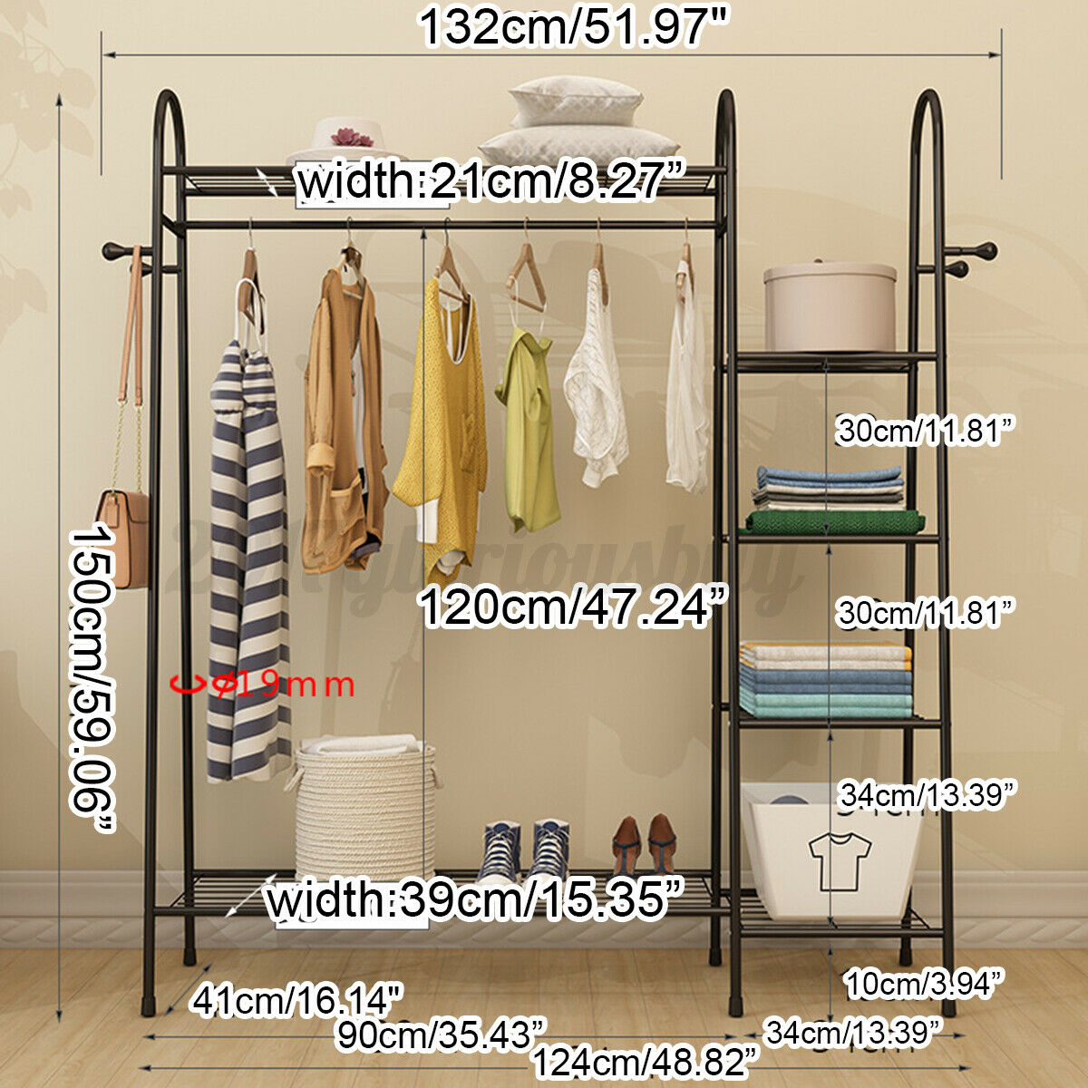 Large Metal Clothes Rack Hallway Shoe Shelf Storage Organiser Coat Hat Hooks