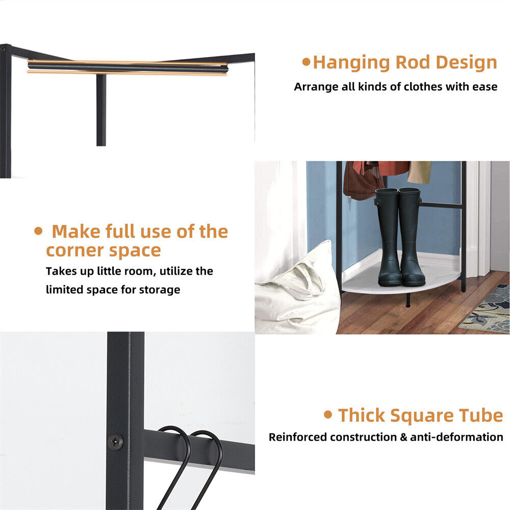 Large Metal Coat Stand Corner Garment Rack Clothes Rail Wall Hanging Shelf Hooks