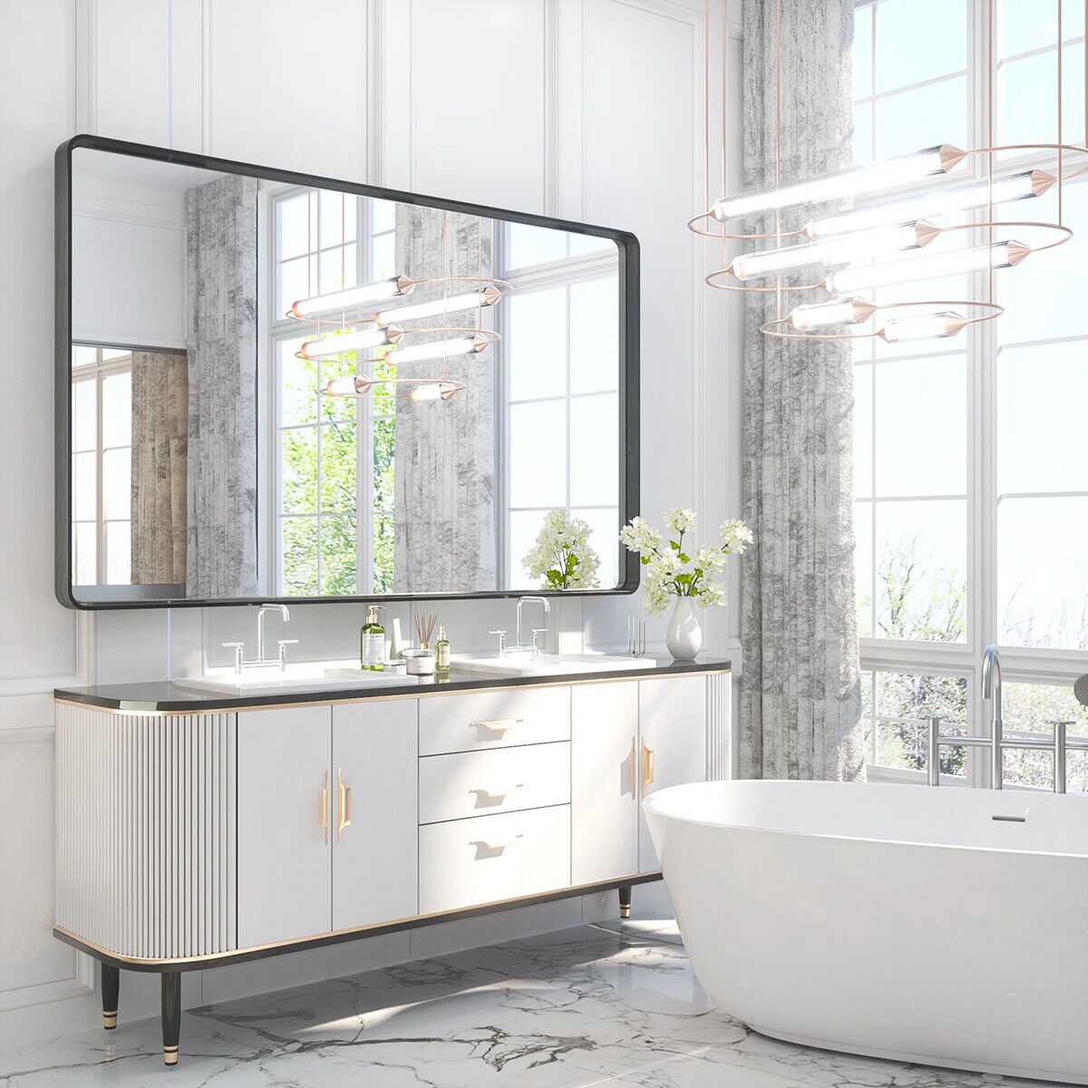 Large Metal Framed Wall Mounted Mirror Bathroom Bedroom Vanity Make Up Art Glass