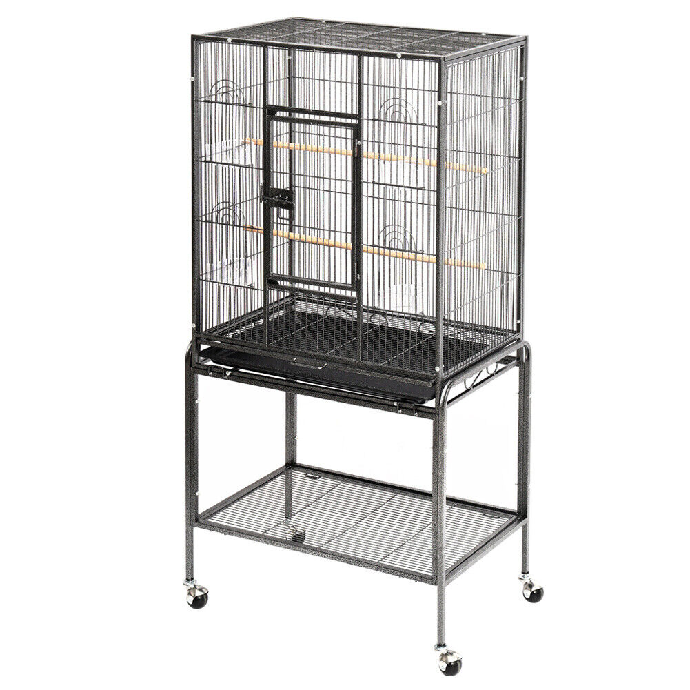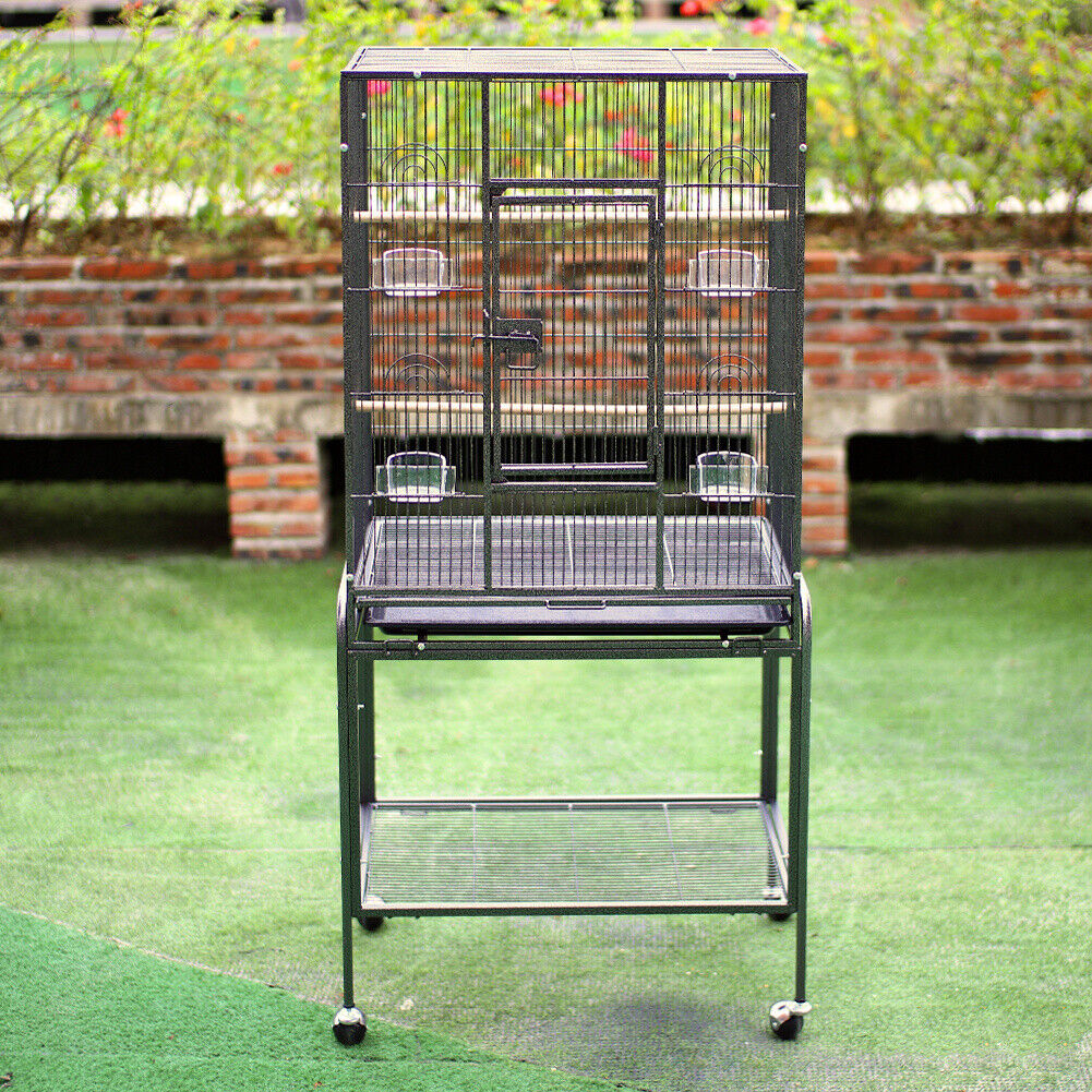 Large Metal Rolling Bird Cage with Stand Parrot Budgie Canary Cockatiel Aviary