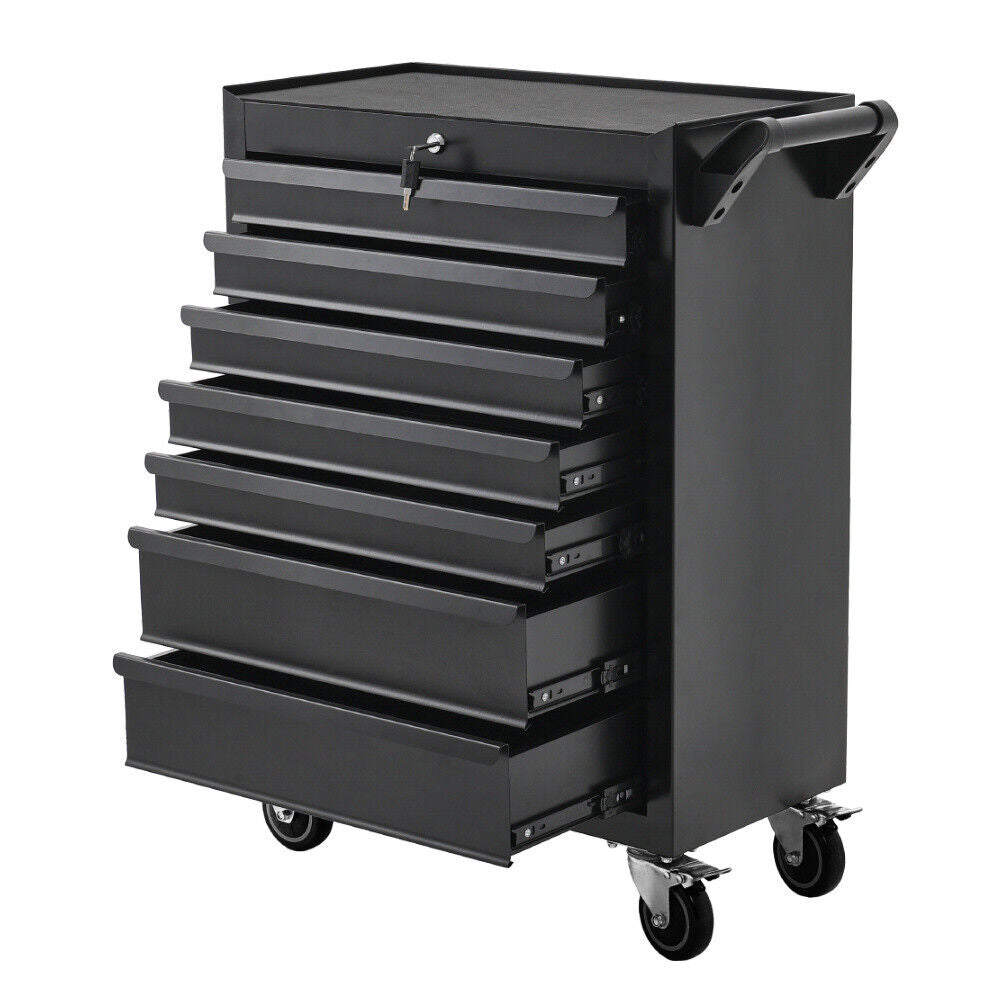 Large Metal Tool Chest Box Roller Cabinet Garage Tool Storage Cart Drawer w/Keys