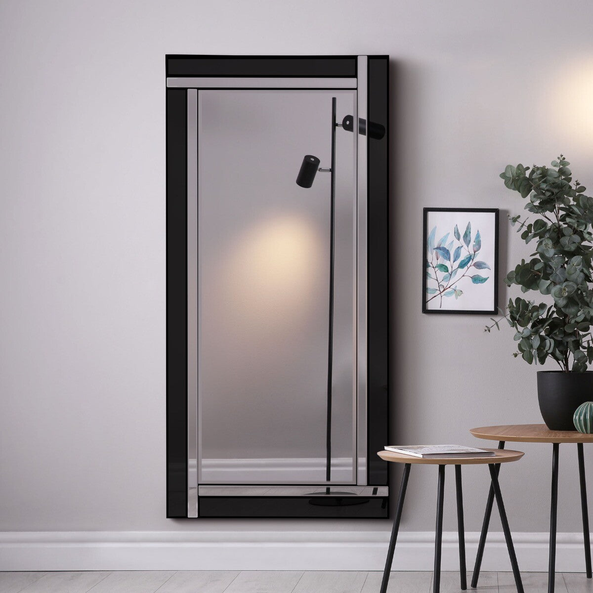 Large Mirror Black and Silver Full Length Bevelled Wall 5Ft9 X 2Ft9 174cm X 85cm