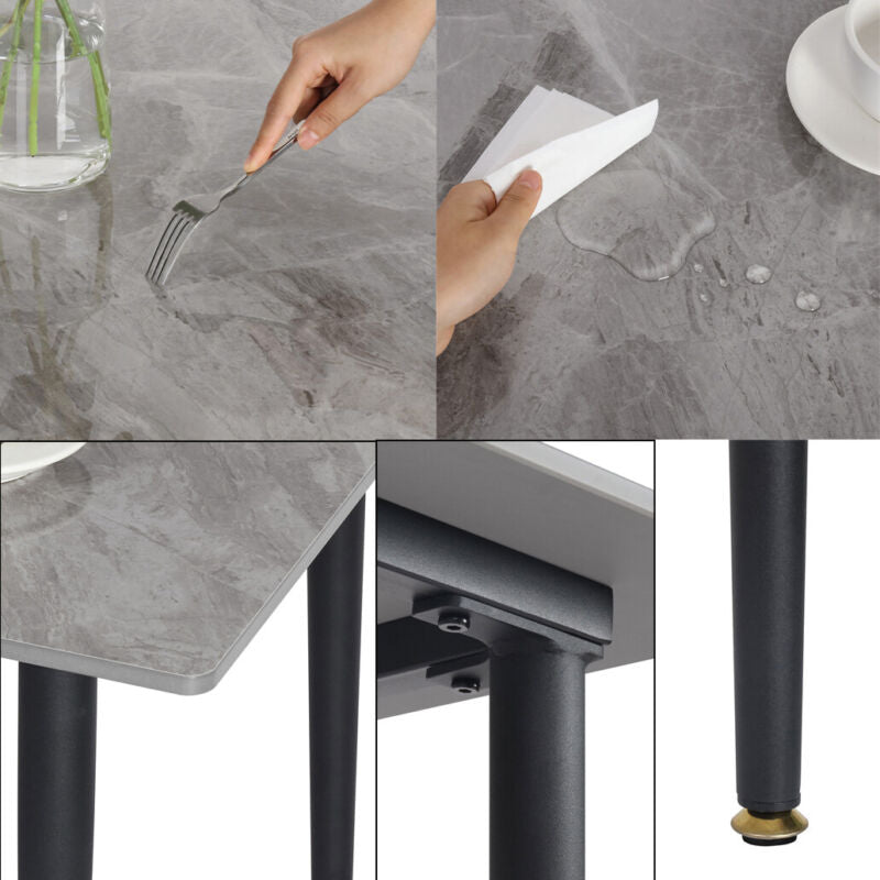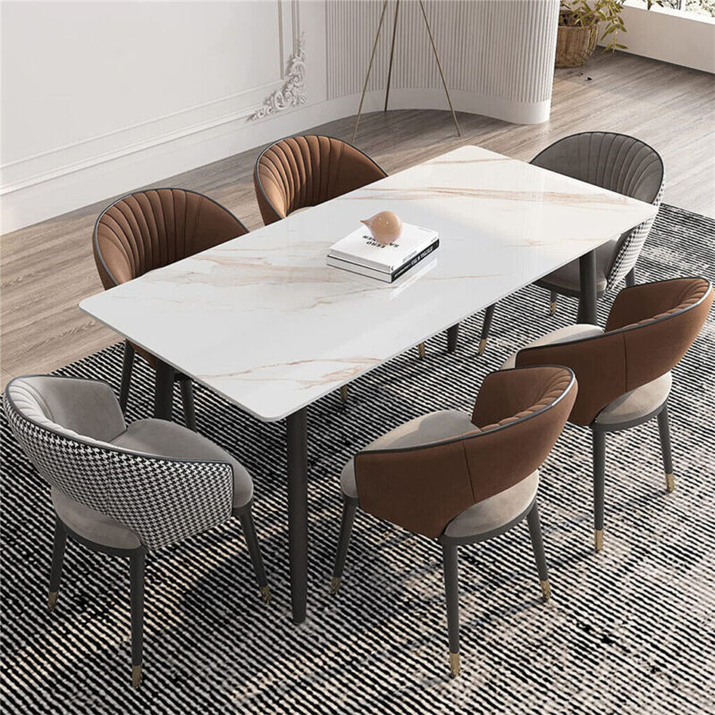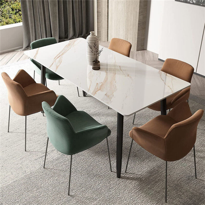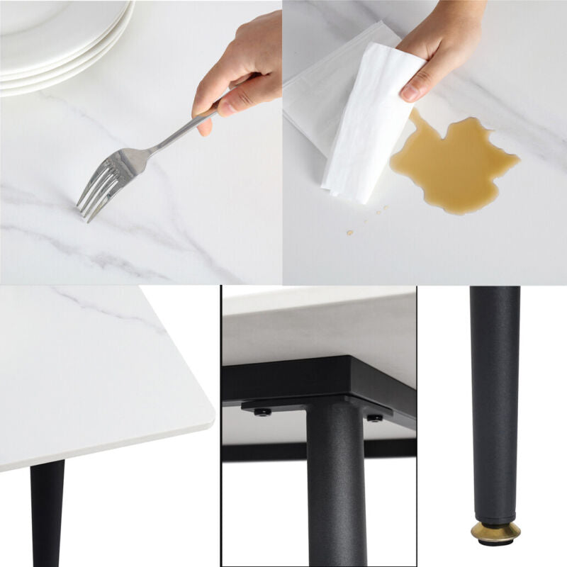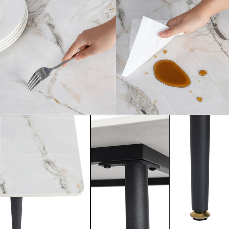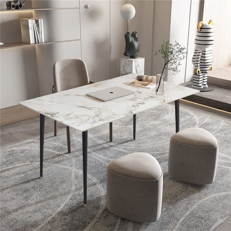 Large Modern Marble Dining Table Kitchen Dinner Desk 4-6 Person w/ Metal Legs