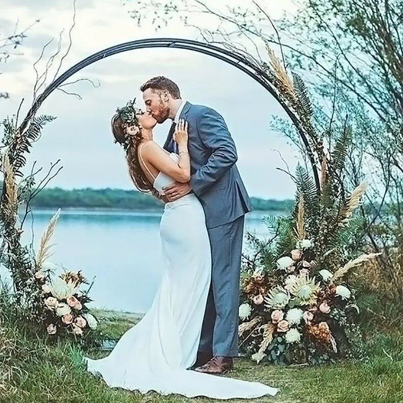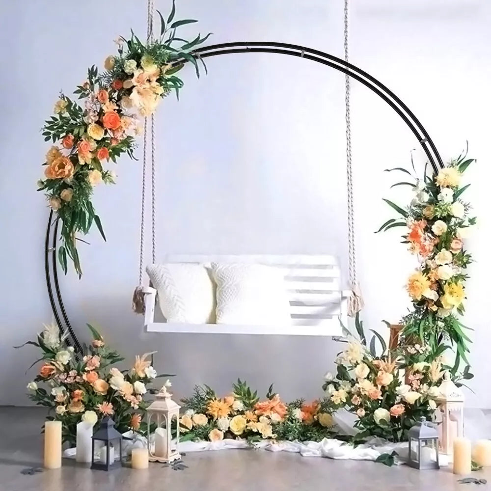 Large Moon Gate Arch Frame Walk Through Flowers Circular Standing Wedding Party