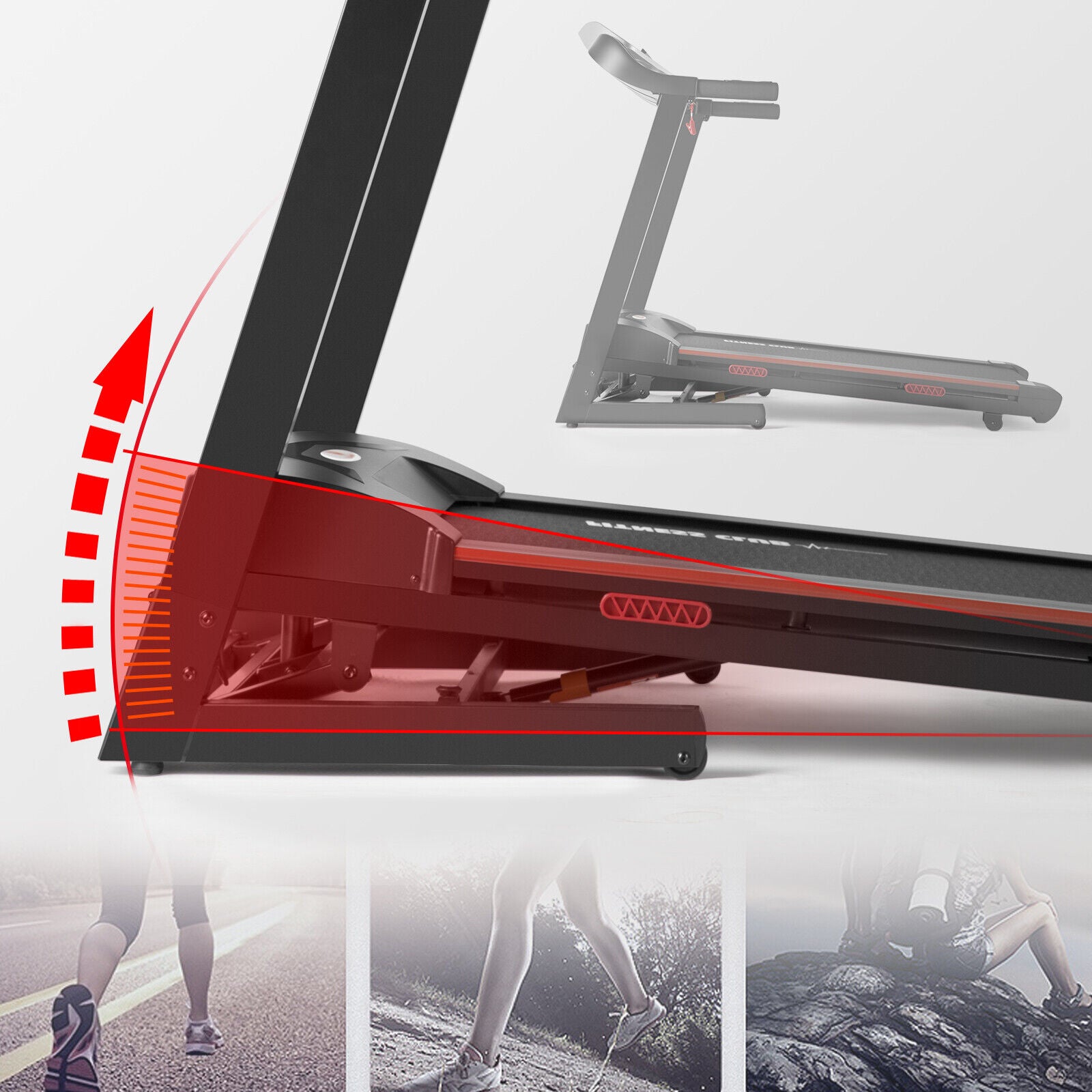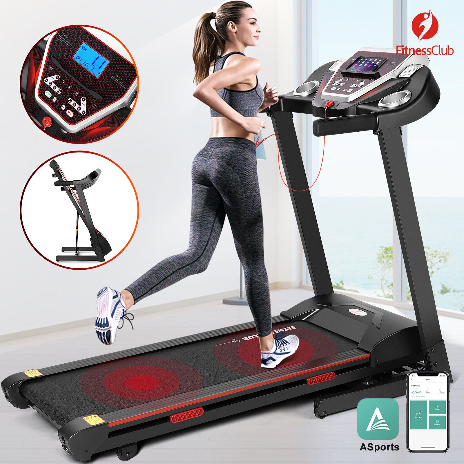 Interval Programme, Bottle Holder, Calorie Monitor, Electrically Powered, Foldaway/Compact, Heart Rate Monitor, Incline Adjustment