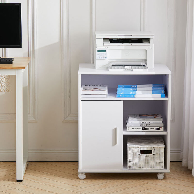 Large Movable Scanner Printer Stand Table Office File Storage Shelf Rack Cabinet