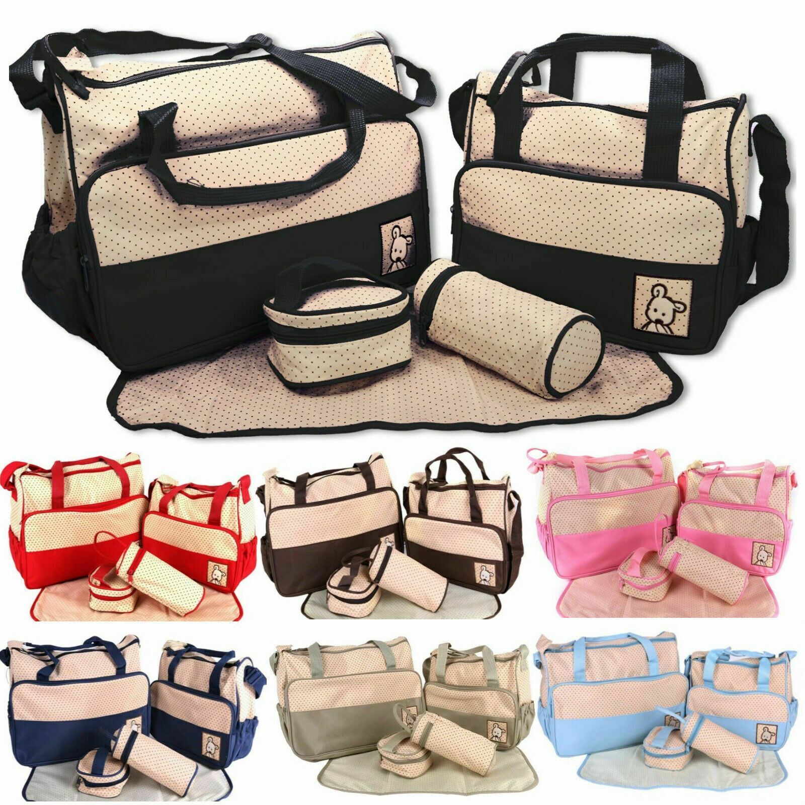 Large Multi-function 5pcs Baby Nappy Diaper Mummy Hospital Changing Bag Handbag