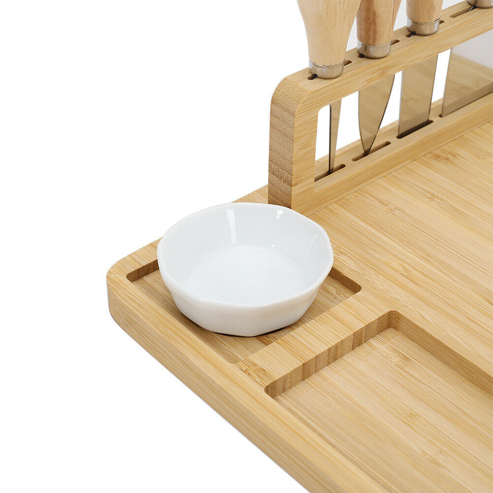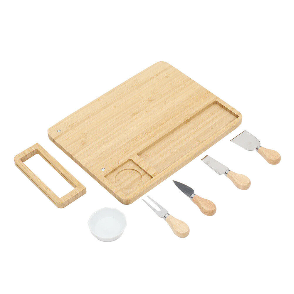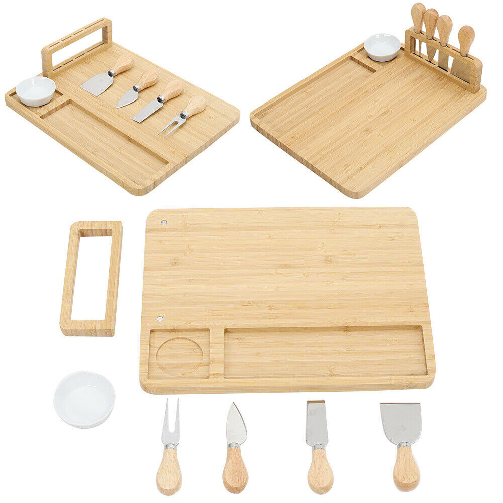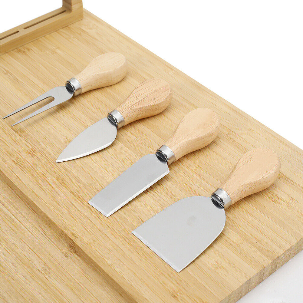 Large Natural Bamboo Cheese Board Set includes 4 Cheese Knives Cutting & Serving