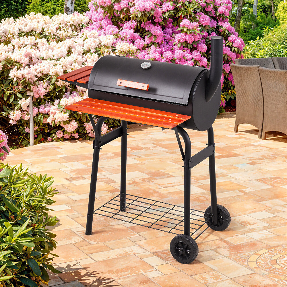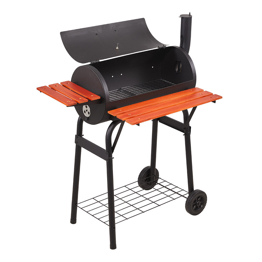 LARGE OIL DRUM BARREL STYLE BBQ SMOKER CART BARBEQUE MEAT FOOD SMOKING COOKING