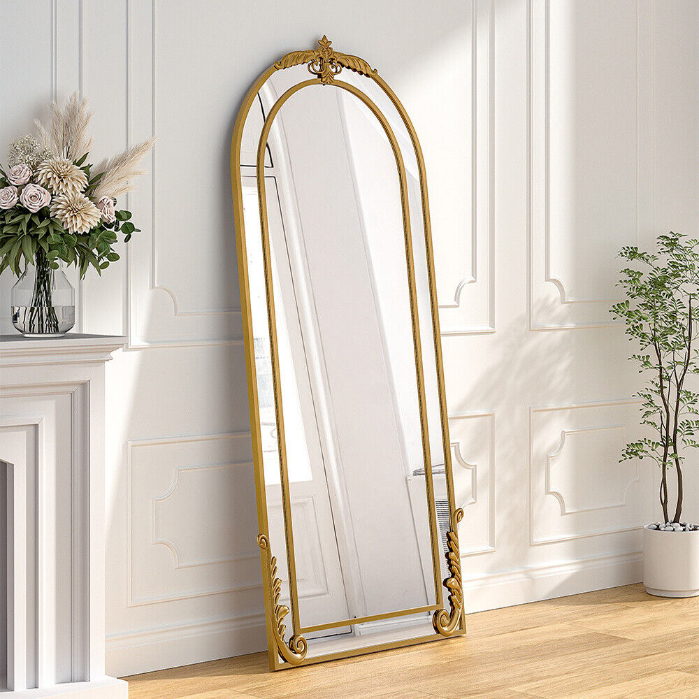 Large Ornate Gold Arched Full Length Wall Leaner Floor Mirror 180cm x80cm Mirror