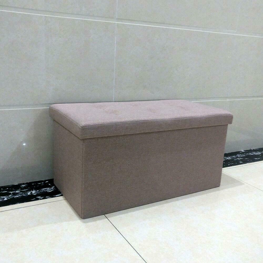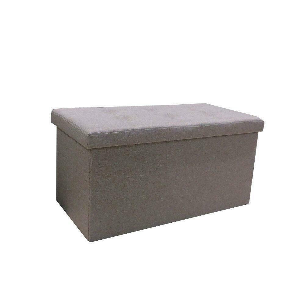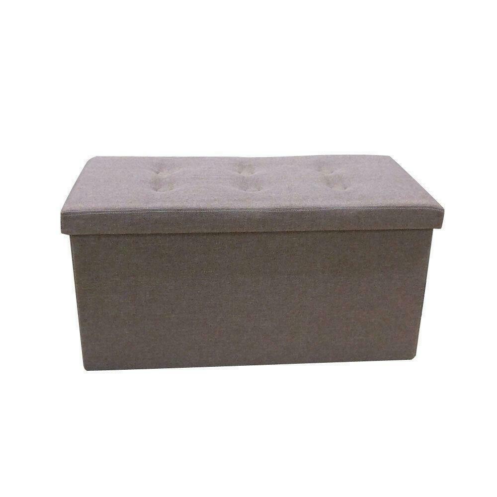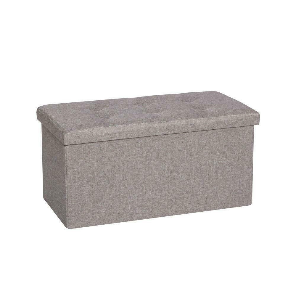 Large Ottoman Foldable Storage Box Linen Suede Foot Stool Seat Furniture Beige