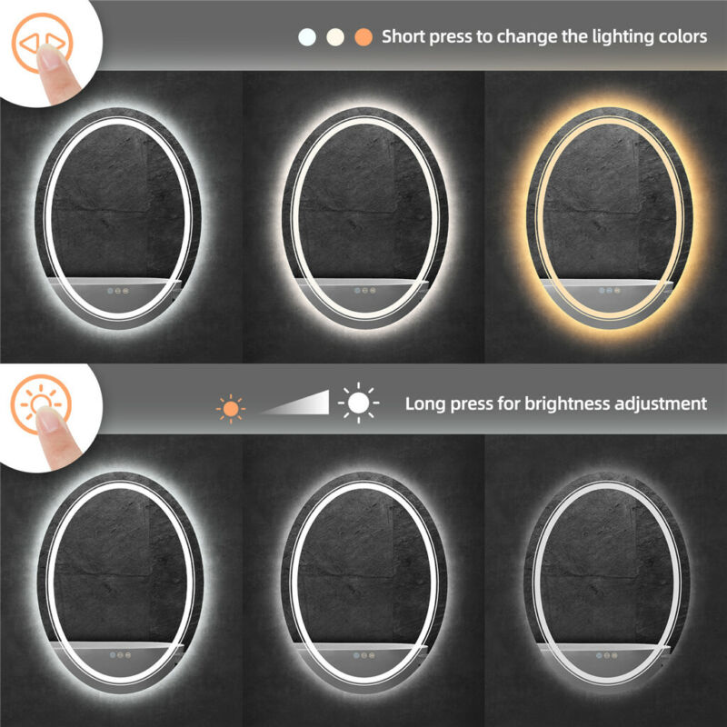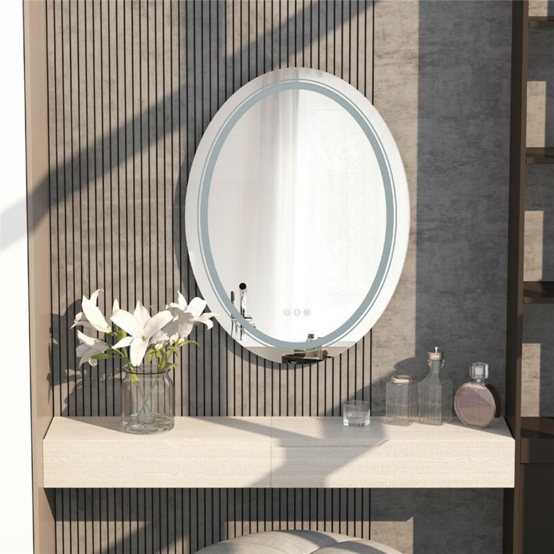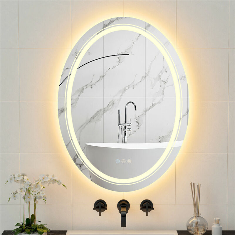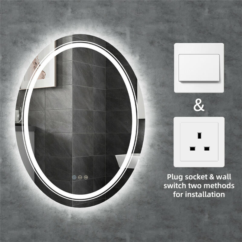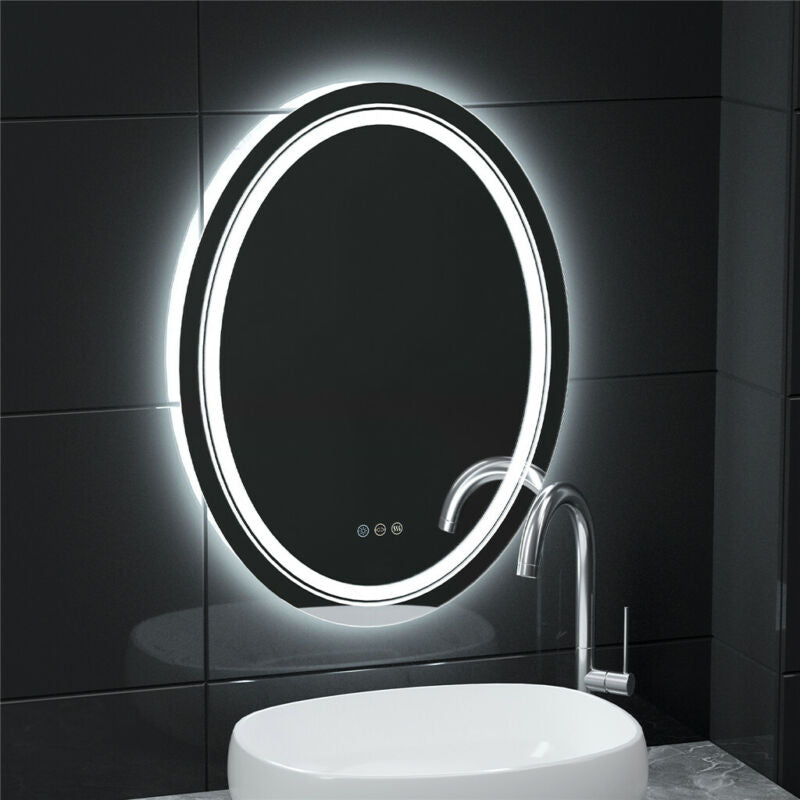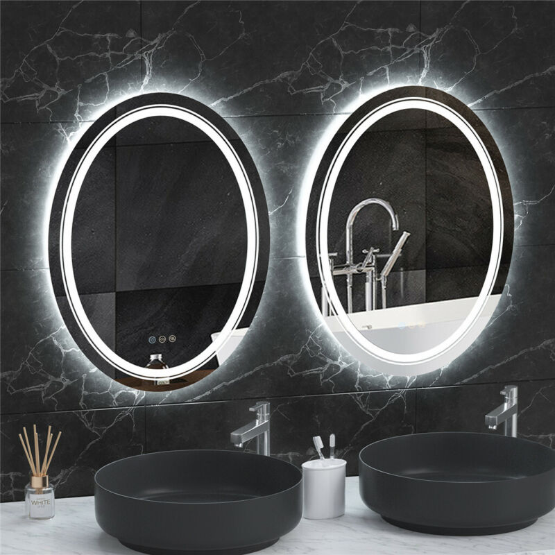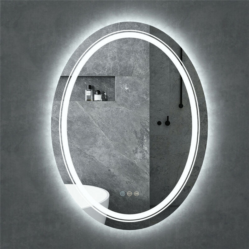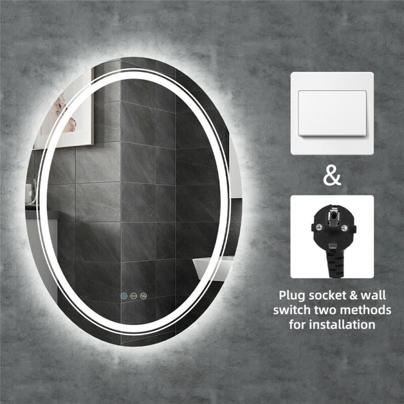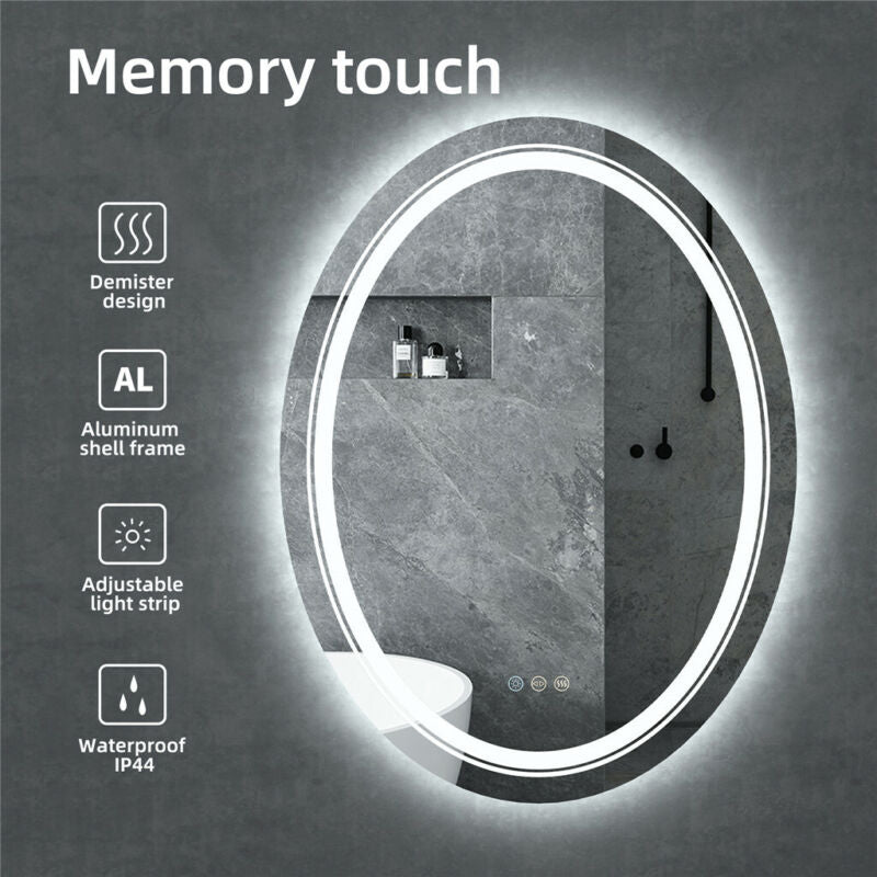 Large Oval Wall LED Bathroom Mirror Dimmable Vanity Mirror Backlit+Front-
