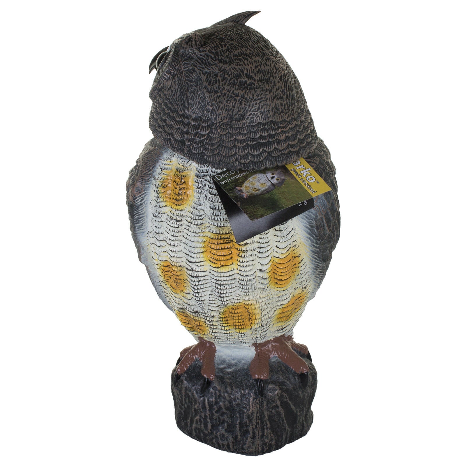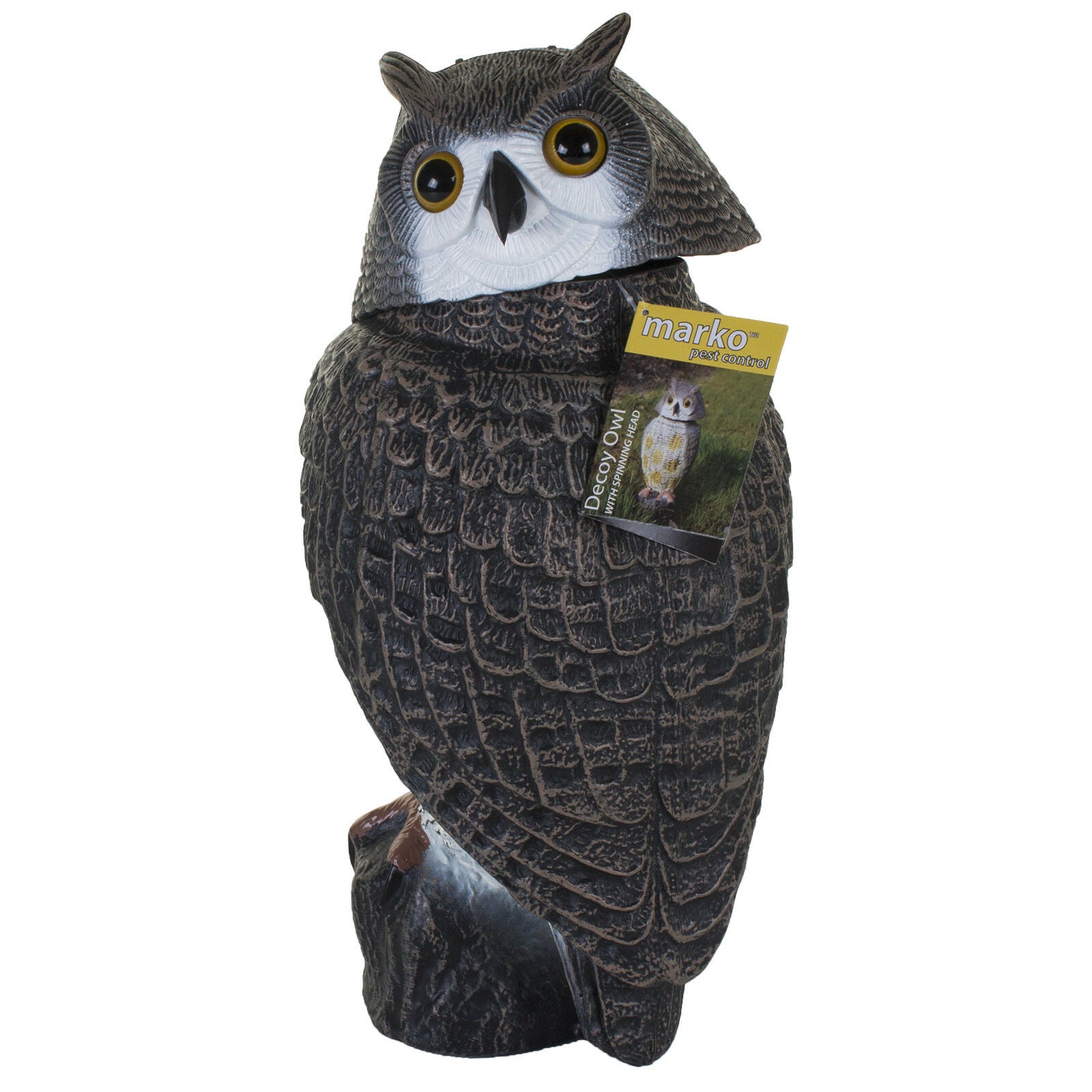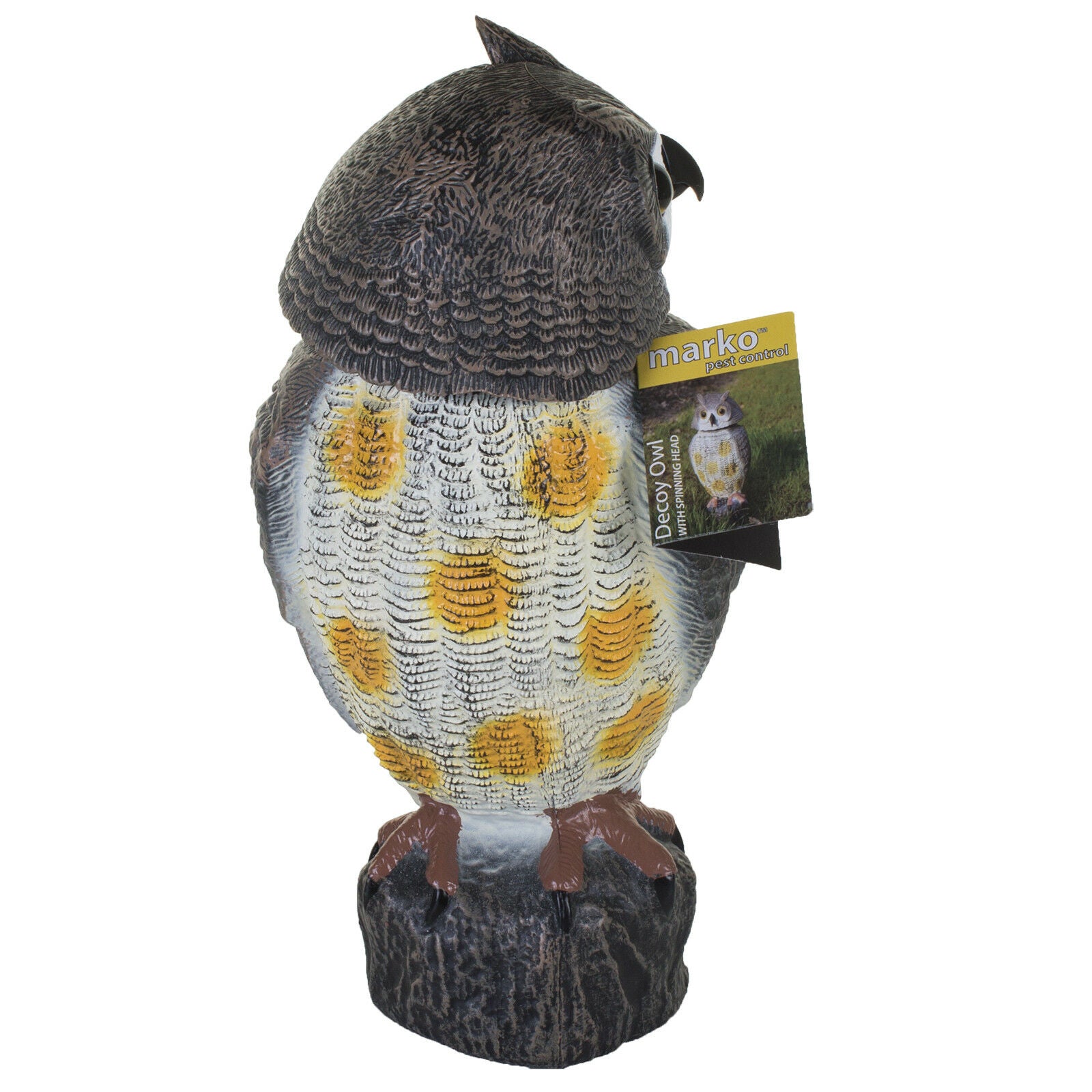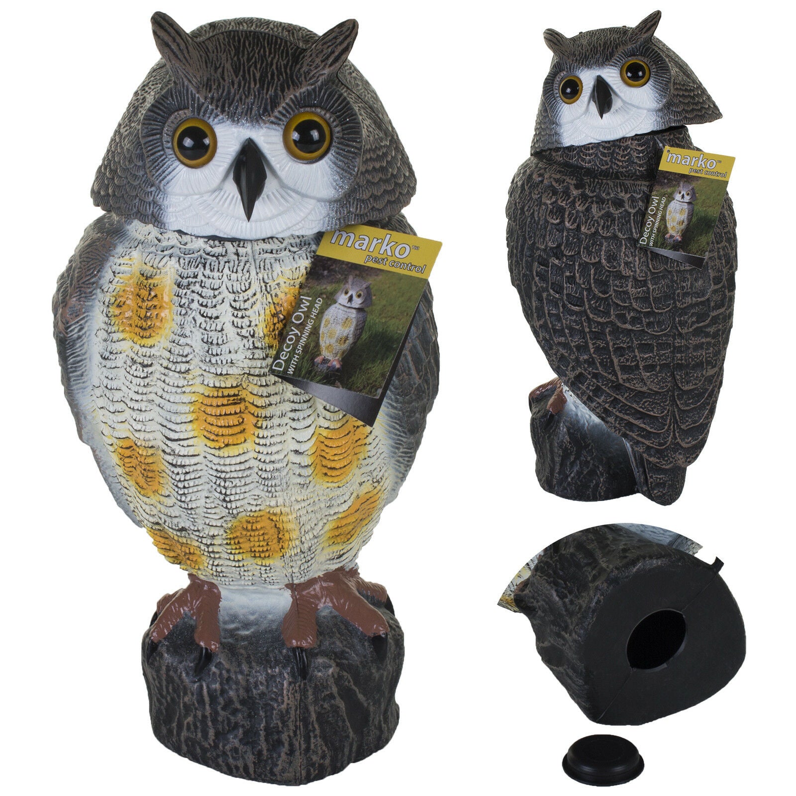 Large Owl Decoy Spinning Rotating Head Realistic Bird Pigeon Garden Crow Scarer