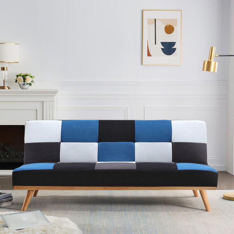 Large Patchwork Couch Click-Clack Sofa Bed Recliner Sleeper Chair Loveseat Study