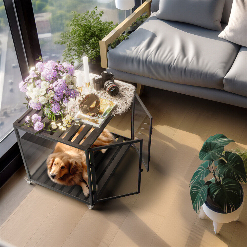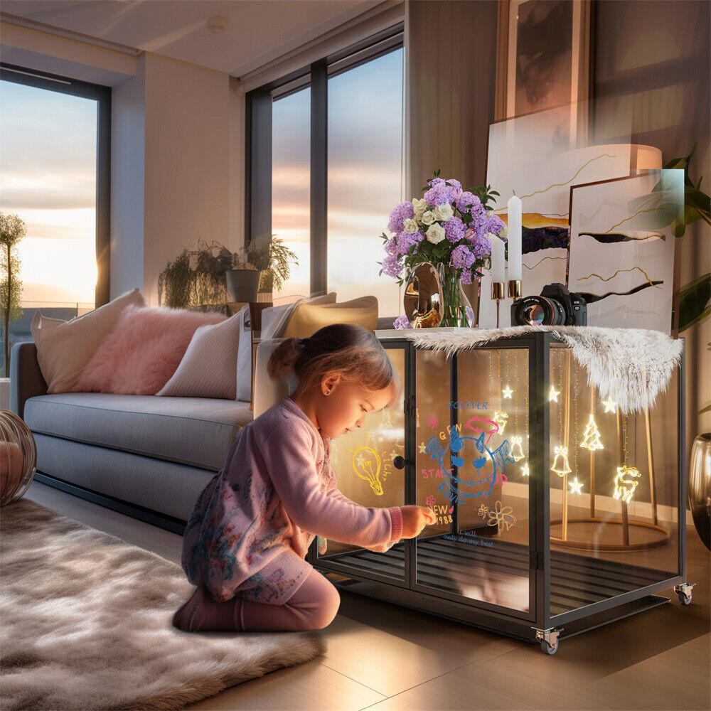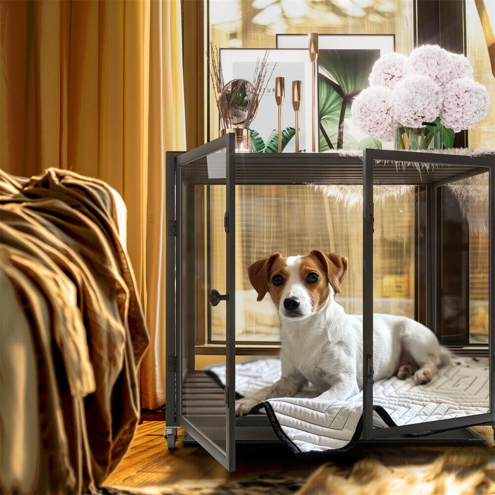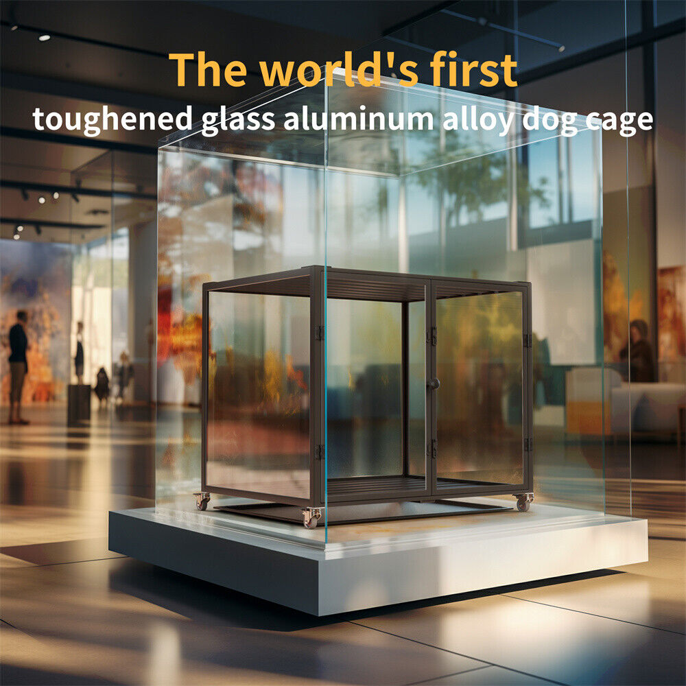 Large Pet Dog Crate See Through Glass Kennel Cage Strong Aluminum Frame Lockable