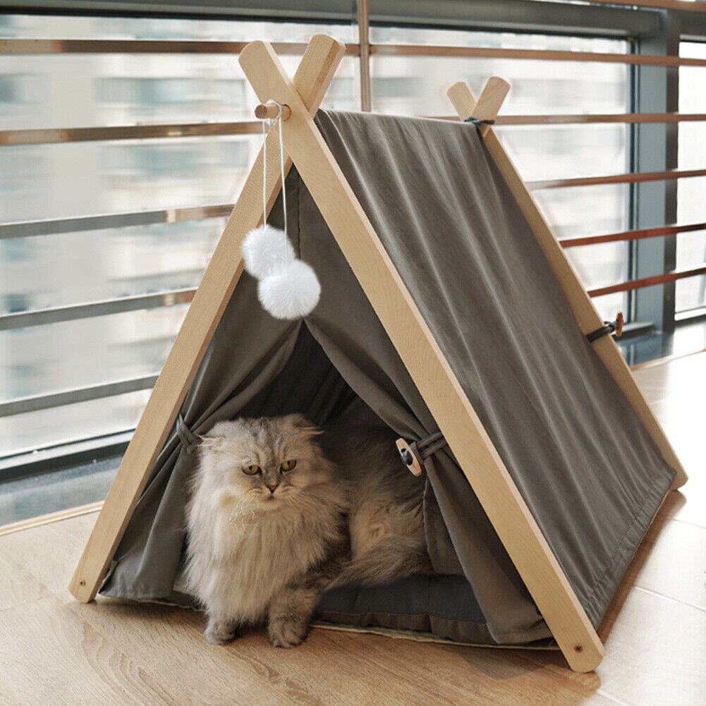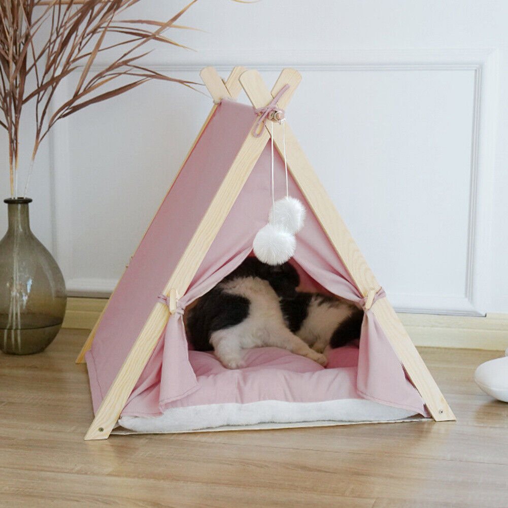 Large Pet Teepee Bed Cat Kitten Dog Puppy Igloo Play Tent Tipi House Cushion Mat