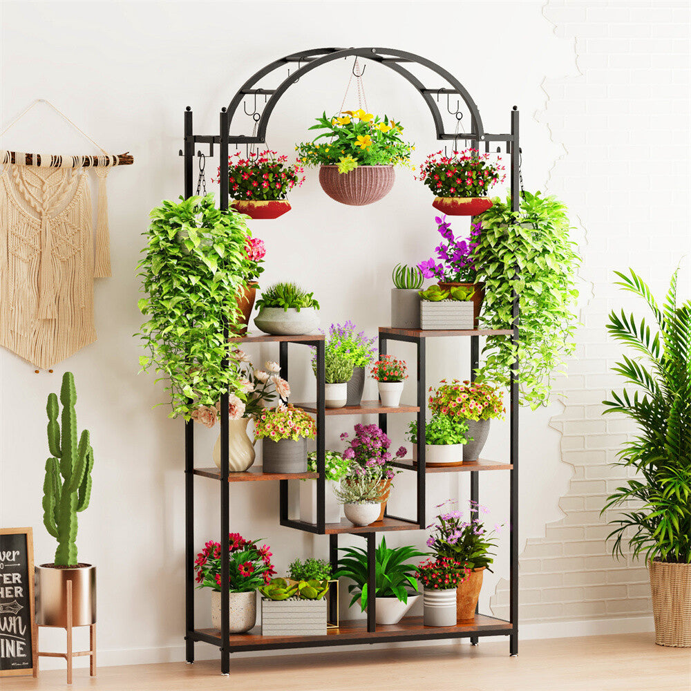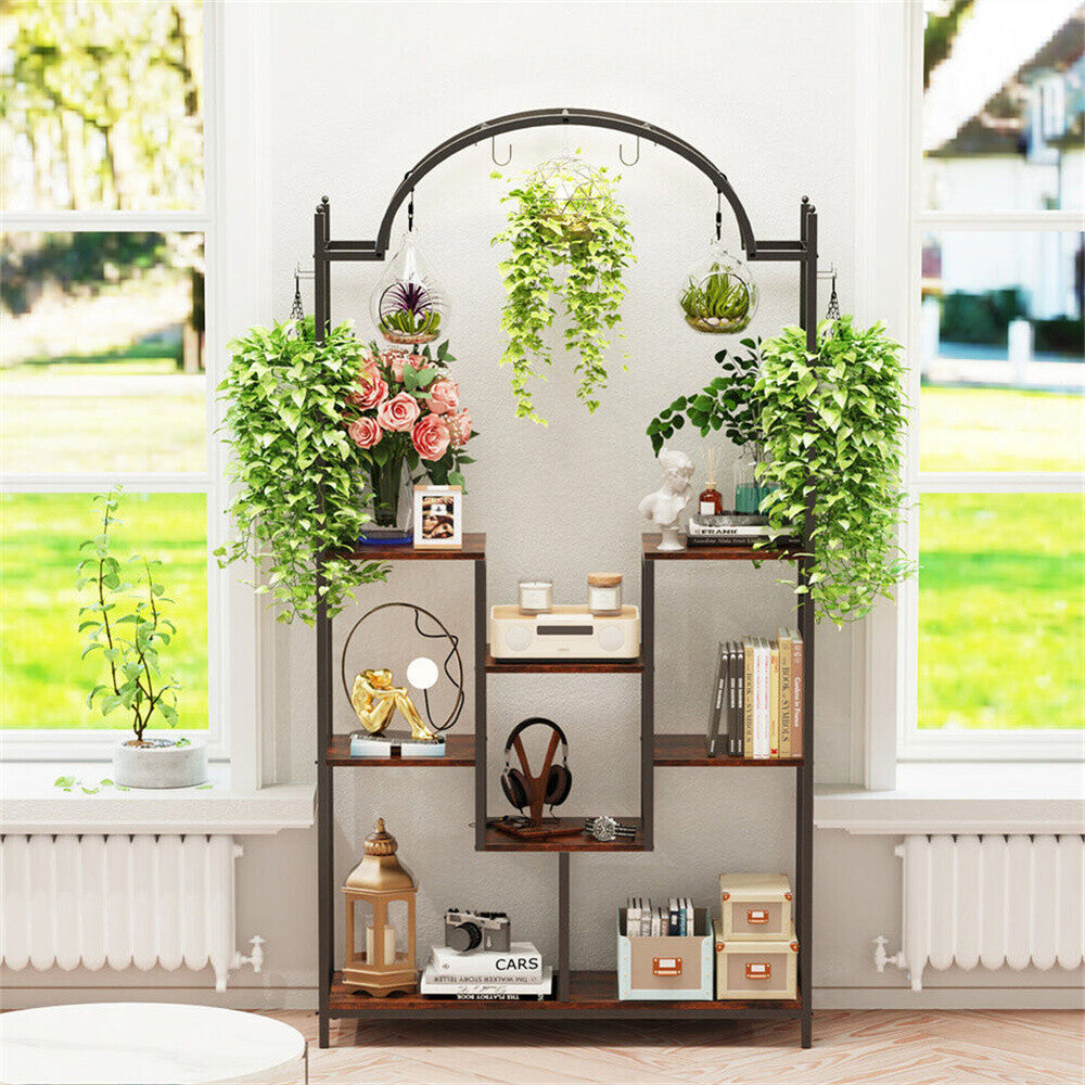 Large Plant Stand Arched Top Planter Pot Hanging Hook Ladder Rail Storage Patio