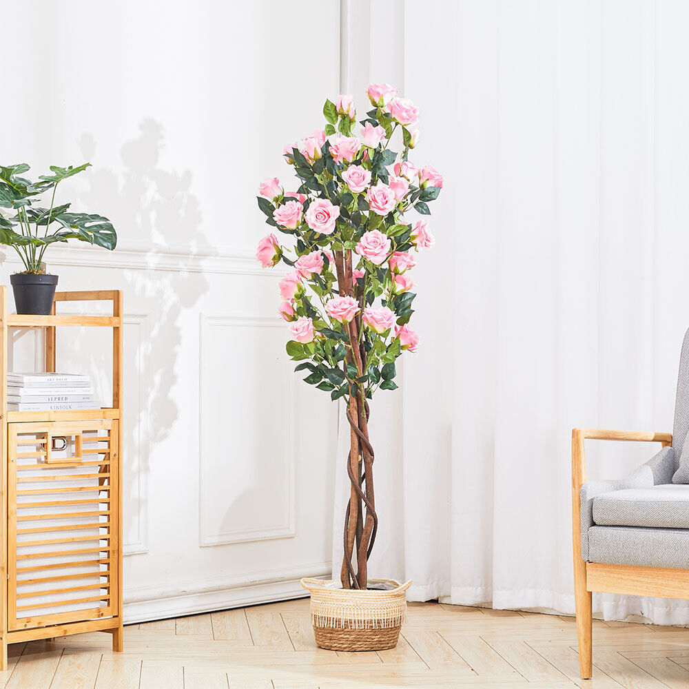 Large Potted Bunch Rose Blossom Flower Artificial Tree Plant Garden Home Decor