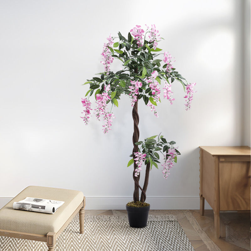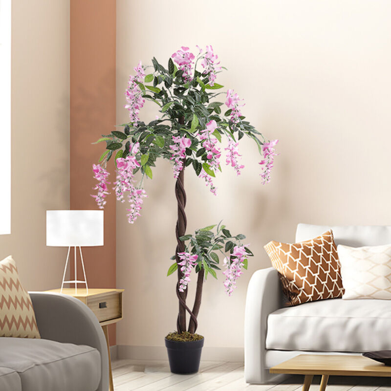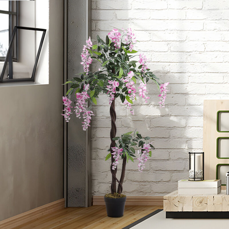Large Potted Pink Wisteria Flower Artificial Tree Fake Plant Home Garden Decor