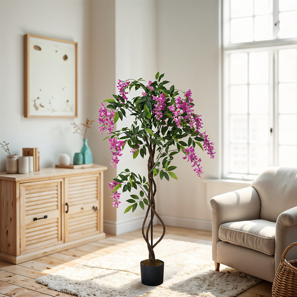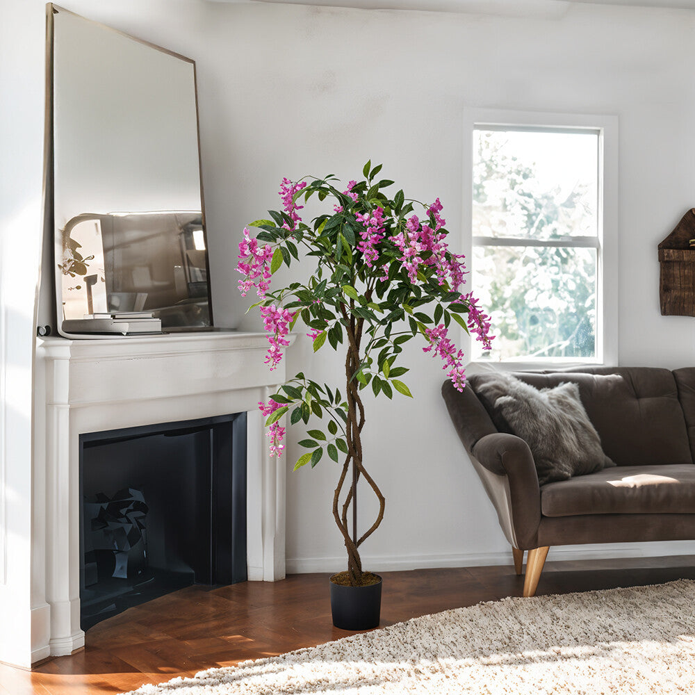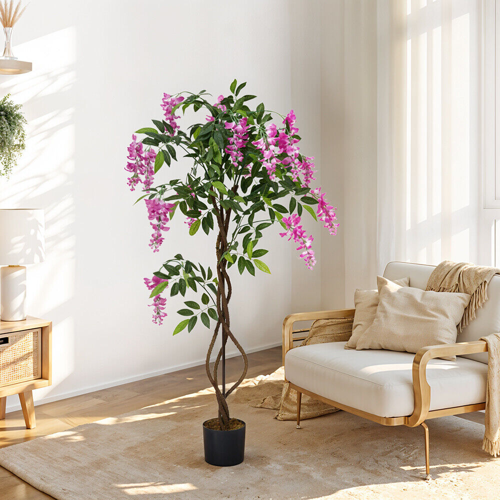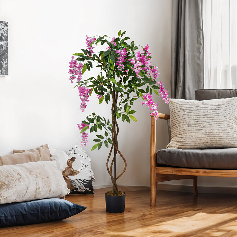Large Potted Pink Wisteria Flower Artificial Tree Fake Plant Home Garden Decor